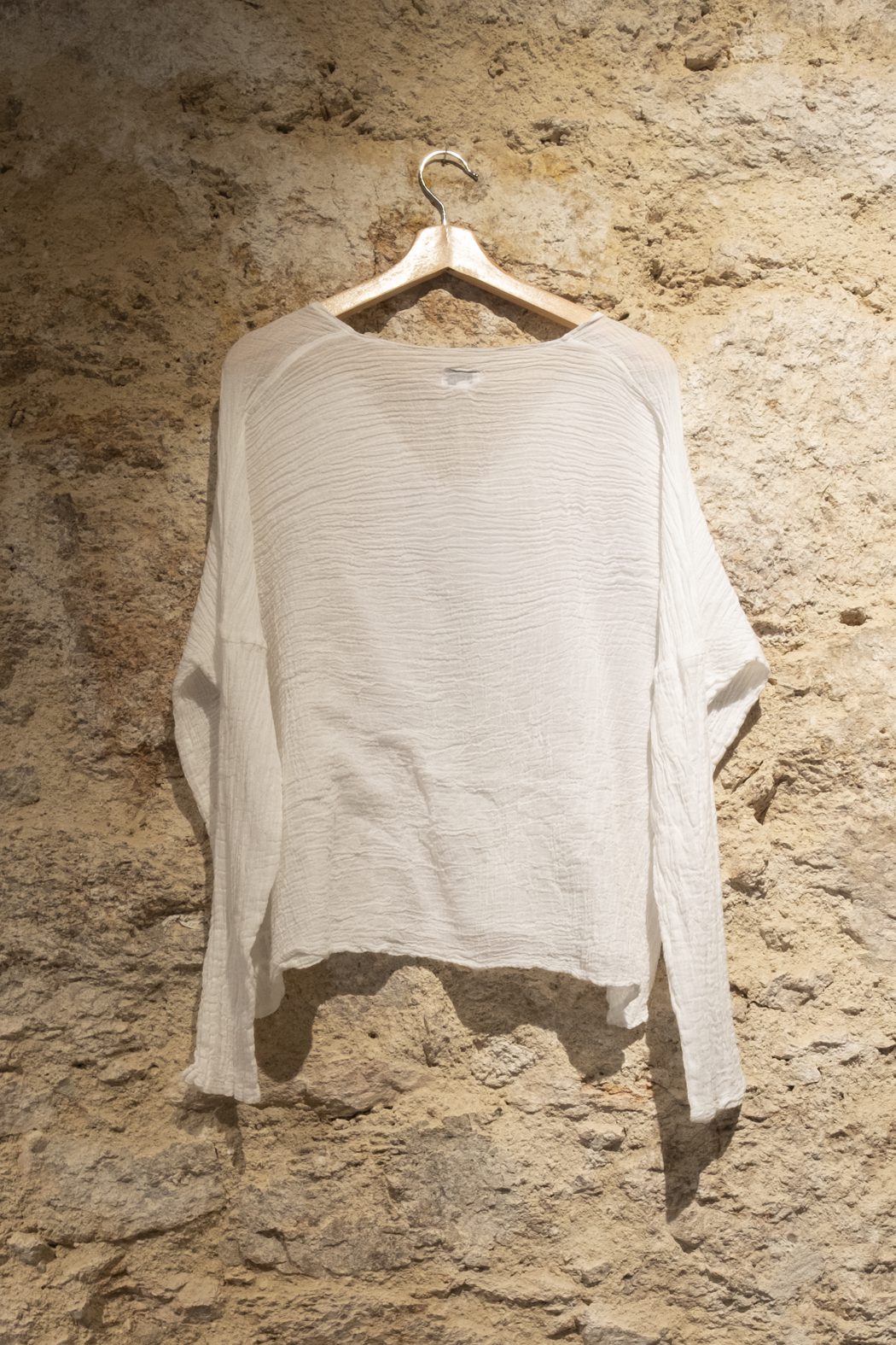 Con su aspecto gaufré-froissé, esta camiseta no necesita plancha y mantiene todo su carácter con muy poco esfuerzo. Para conservar su textura original, se recomienda lavarla a 30° o 40° y usar secadora si se desea recuperar el efecto arrugado del tejido.