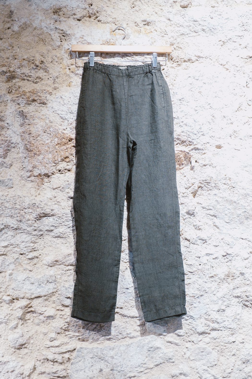 Pantalón confeccionado en lino, de corte relajado y caída fluida.