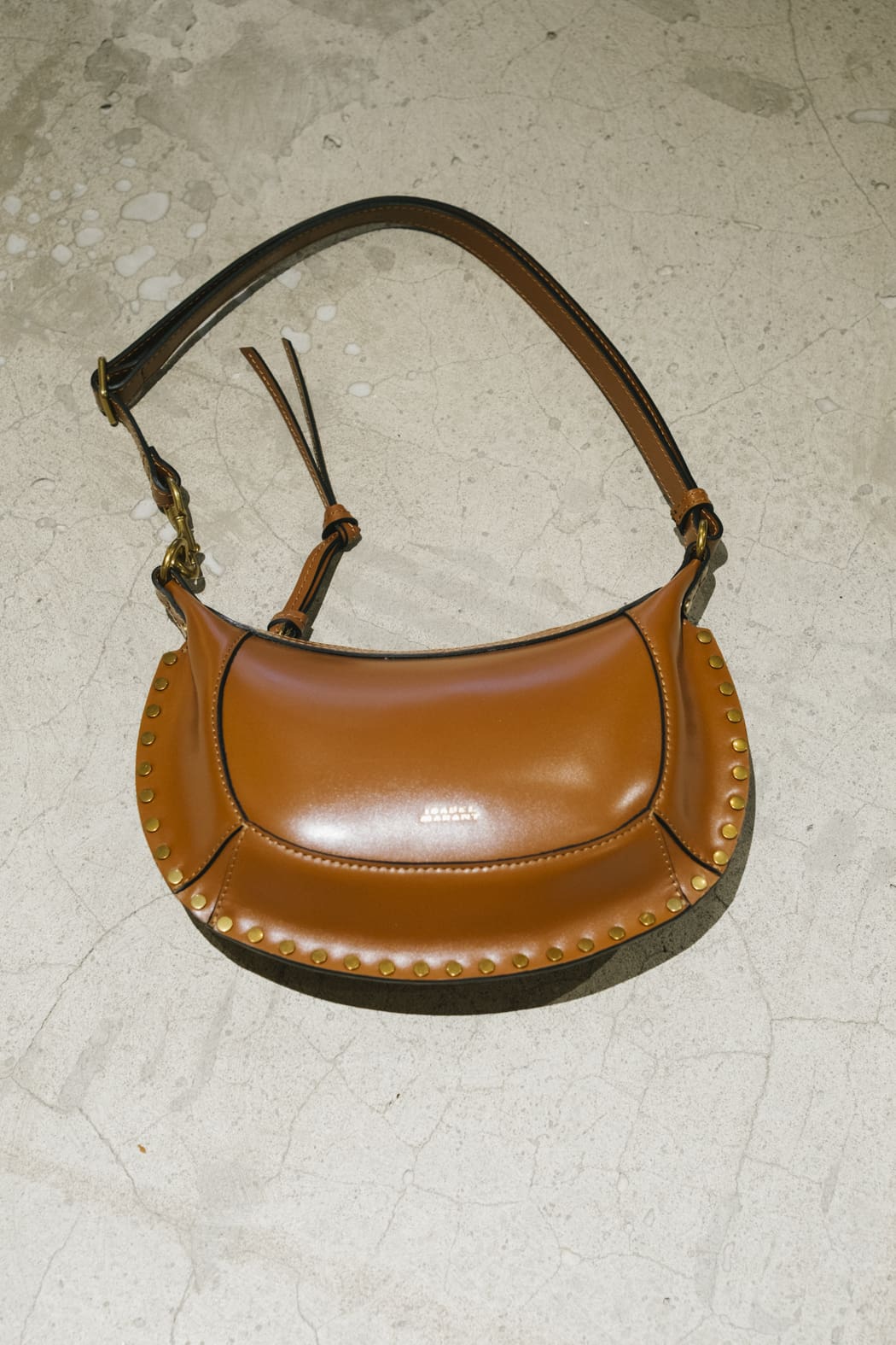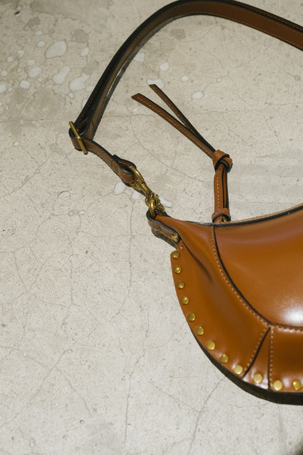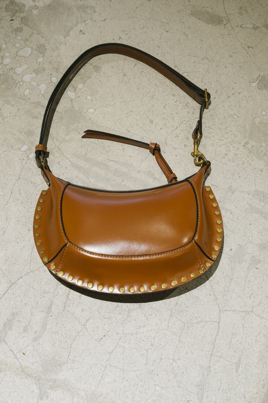 Bolso de hombro baguette con tachuelas en piel