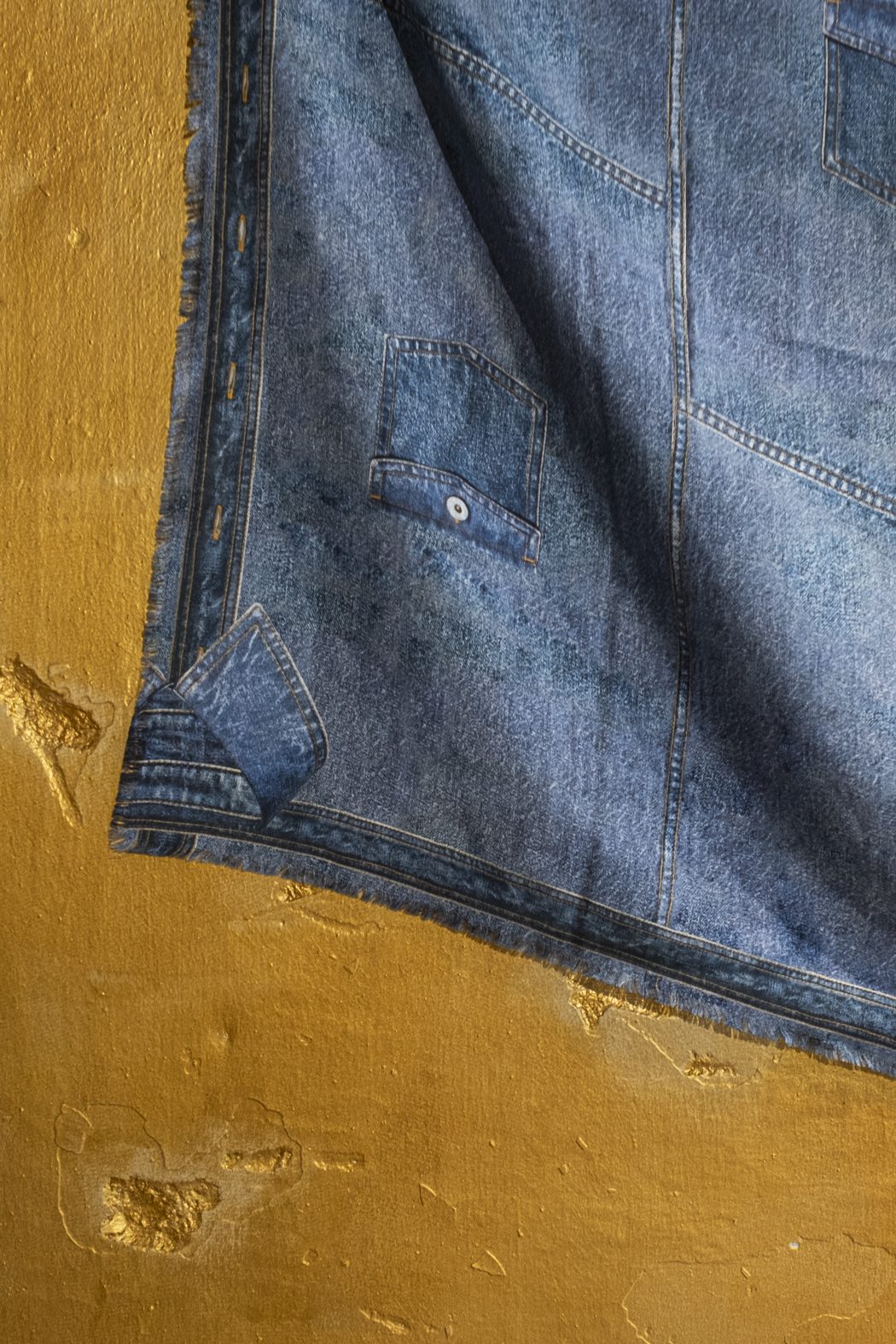 Hermana de la estola New Denim, la estola Jeans rinde homenaje a una tendencia que siempre ha sido un clásico en las pasarelas de todo el mundo: el denim.