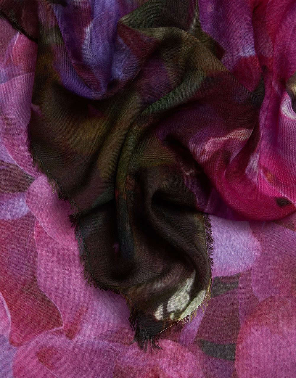 La estola Ortensia luce un estampado floral.