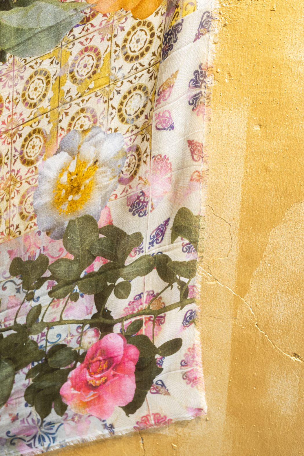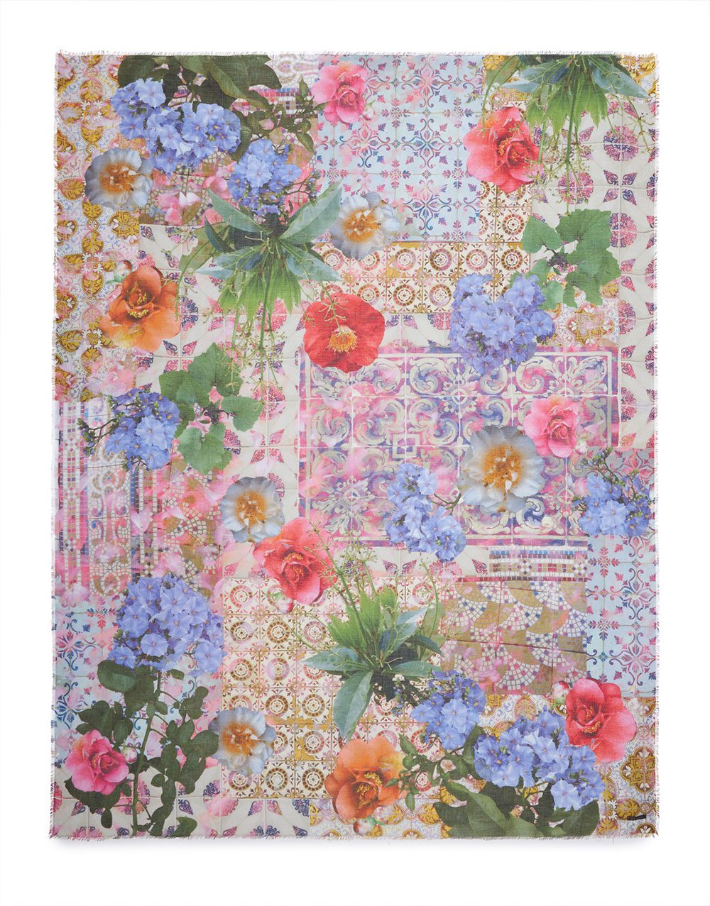 Un mosaico colorido y vibrante: la estola Taormina evoca el estilo siciliano con cerámica y flores.