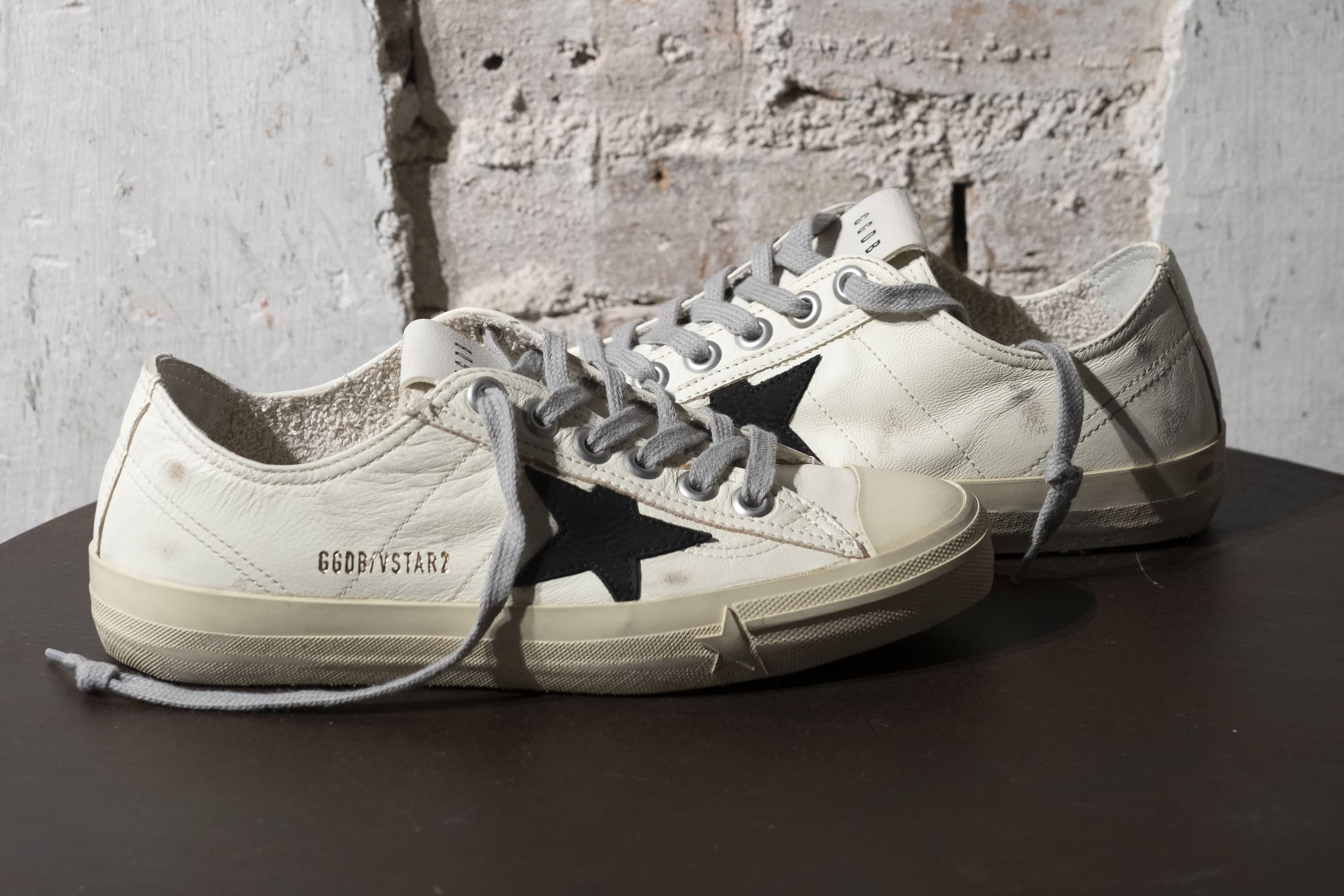Icónicas y atemporales, las zapatillas V-Star son esos zapatos que siempre tienes en tu armario, que siempre usas y de los que nunca te cansas. Los modelos Golden Goose están hechos de cuero, con una estrella GGDB en el lateral, líneas minimalistas y una puntera de goma. Lo que hace que V-Stars sea especial son sus tratamientos hechos a mano que dan una apariencia clásica envejecida, y la elección de la artesanía a mano típica de la tradición de fabricación italiana.