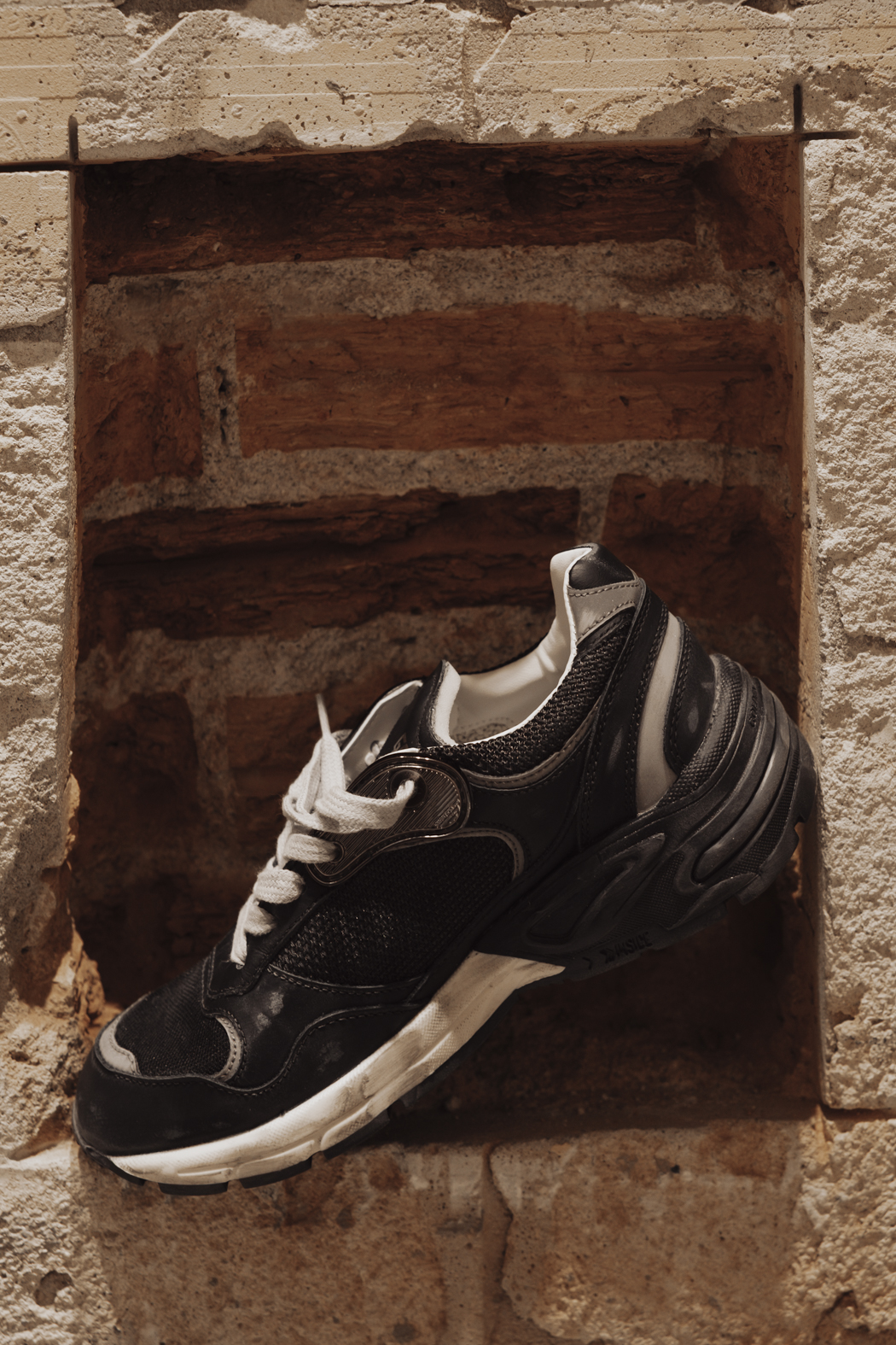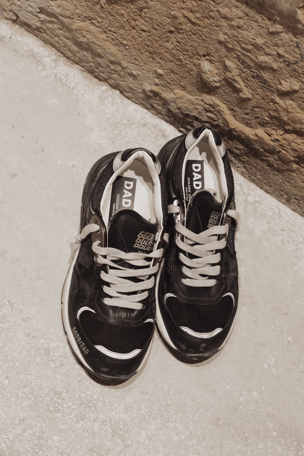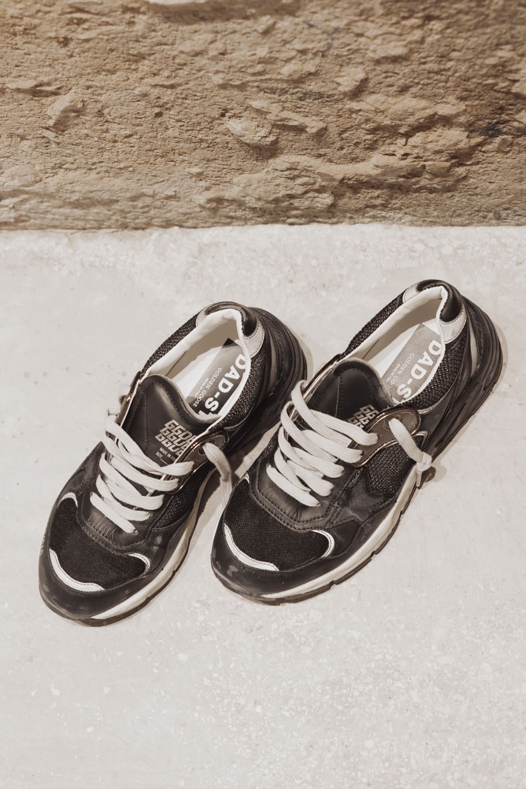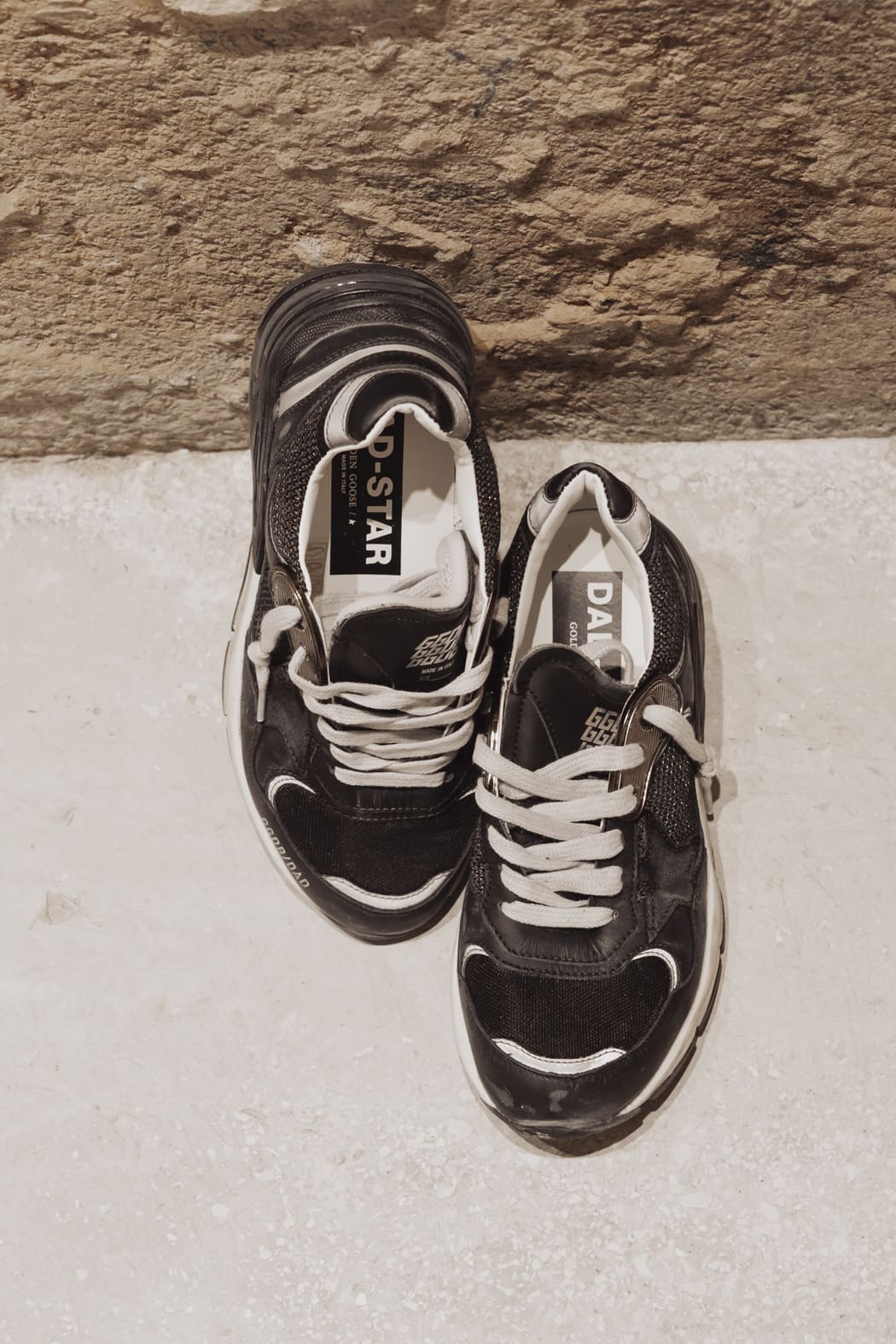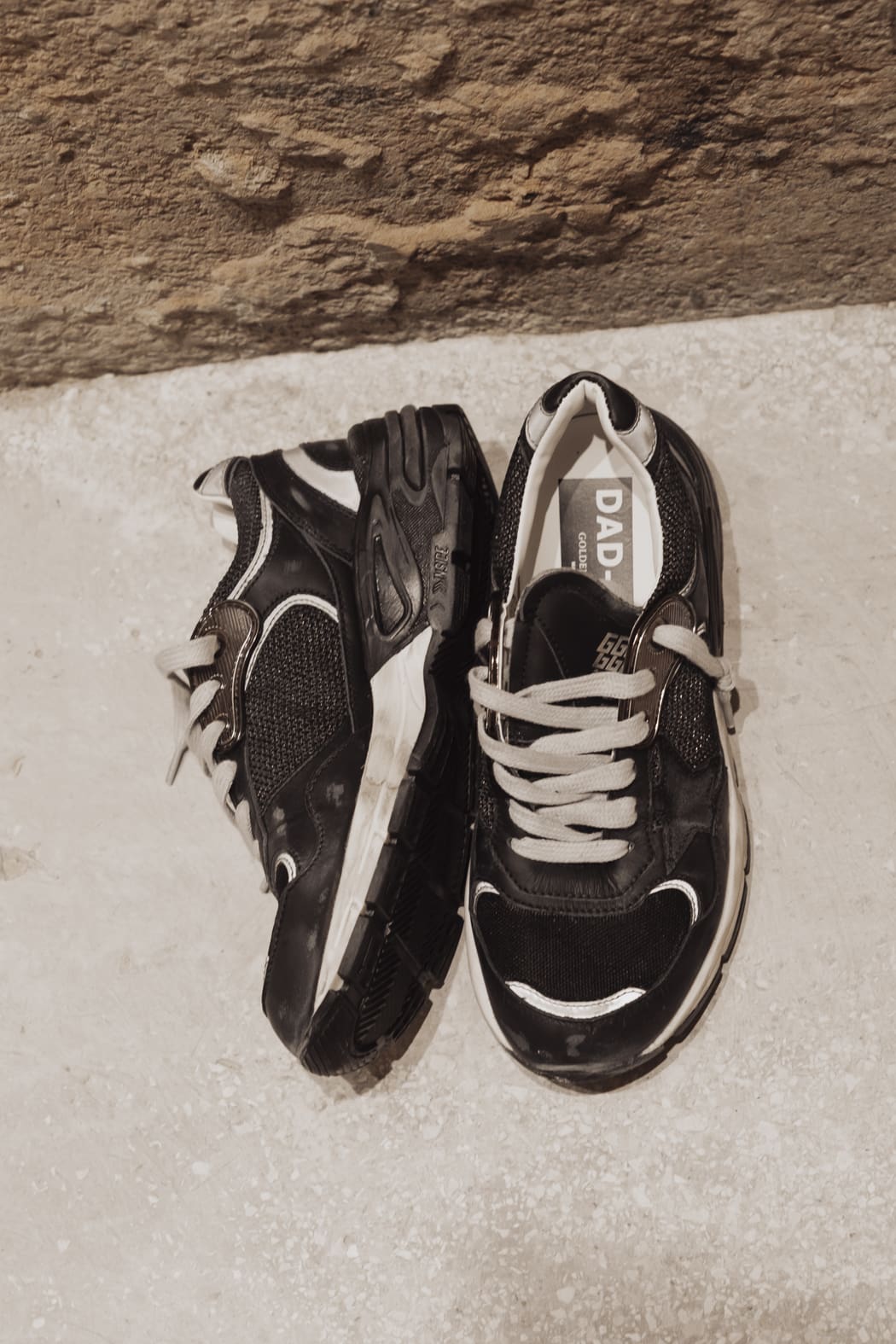 Un alma con muchas historias: nuestras zapatillas deportivas Dad-Star tienen un estilo atemporal creado para ser transmitido de generación en generación. Rica en detalles sofisticados, como la suela amarillenta que evoca la idea de colgar el calzado a la luz del sol, esta versión para mujer se caracteriza por su pala de malla y napa negras resaltada con la estrella de ante color negro y el refuerzo del talón de napa negra con aplicaciones de tejido reflectante. Y como toque final, los pasadores para cordones color metálico y los cordones color nata.