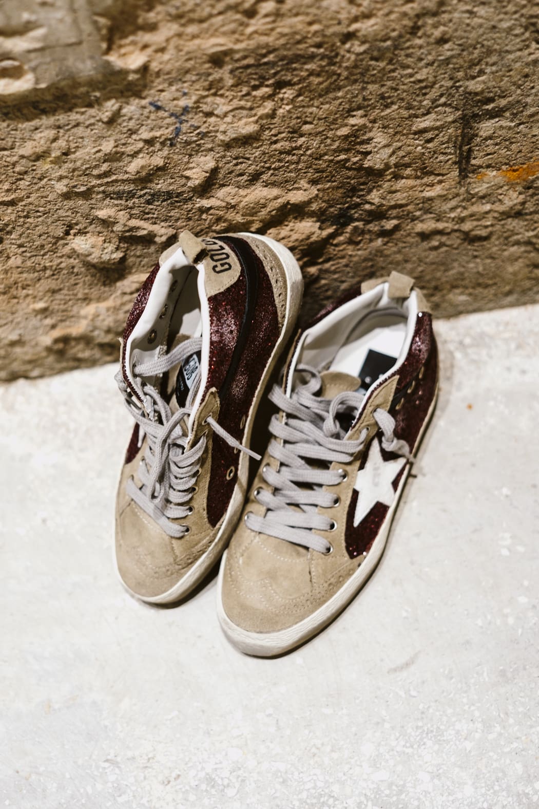 Versatilidad y una elegancia única: las zapatillas deportivas Mid Star se inspiran en la escena skate de los años ochenta, pero con un enfoque sofisticado. En este modelo, la pala con purpurina burdeos se caracteriza por sus aplicaciones de ante color gris paloma, su detalle de «coma» de piel negra y su estrella de piel blanca. Y como toque final de estilo, los cordones color gris hielo y los detalles con perforaciones de estilo inglés.