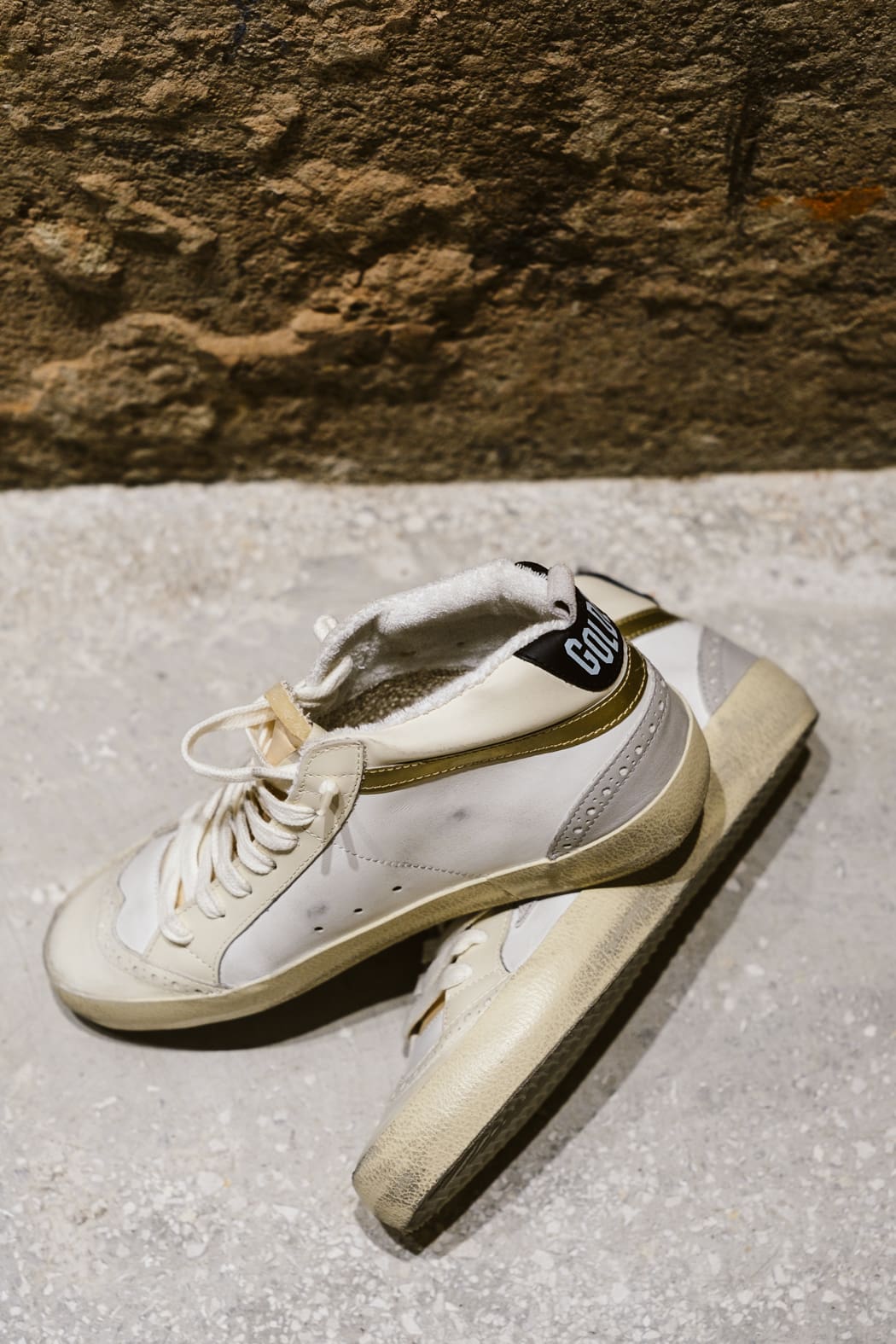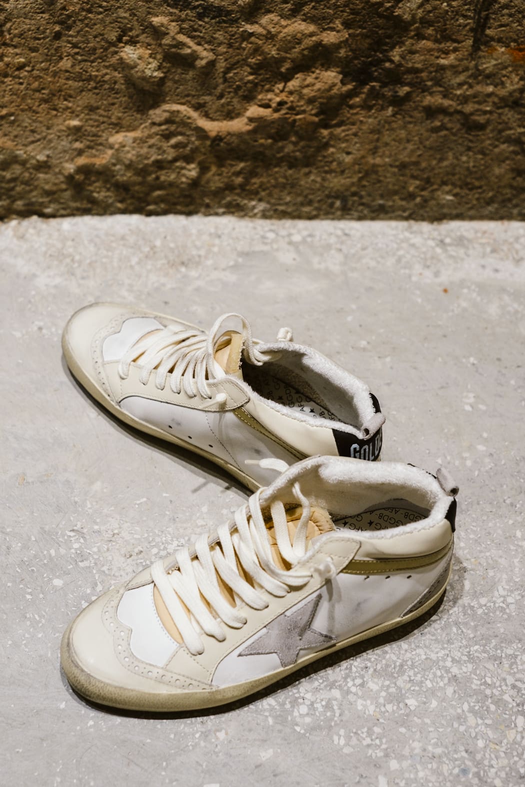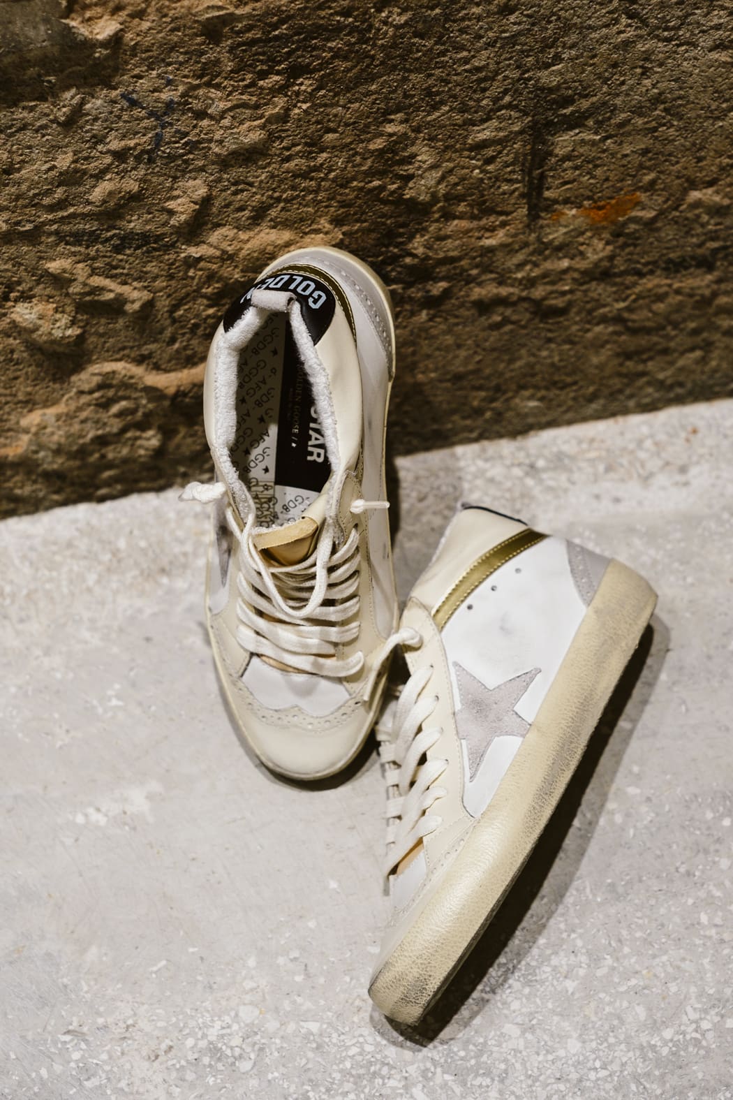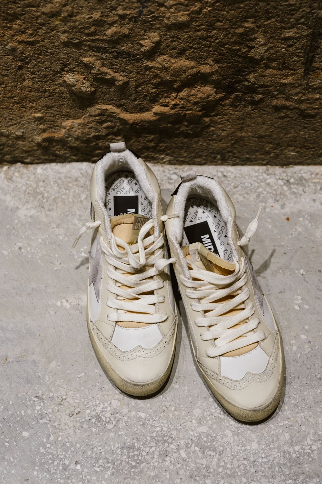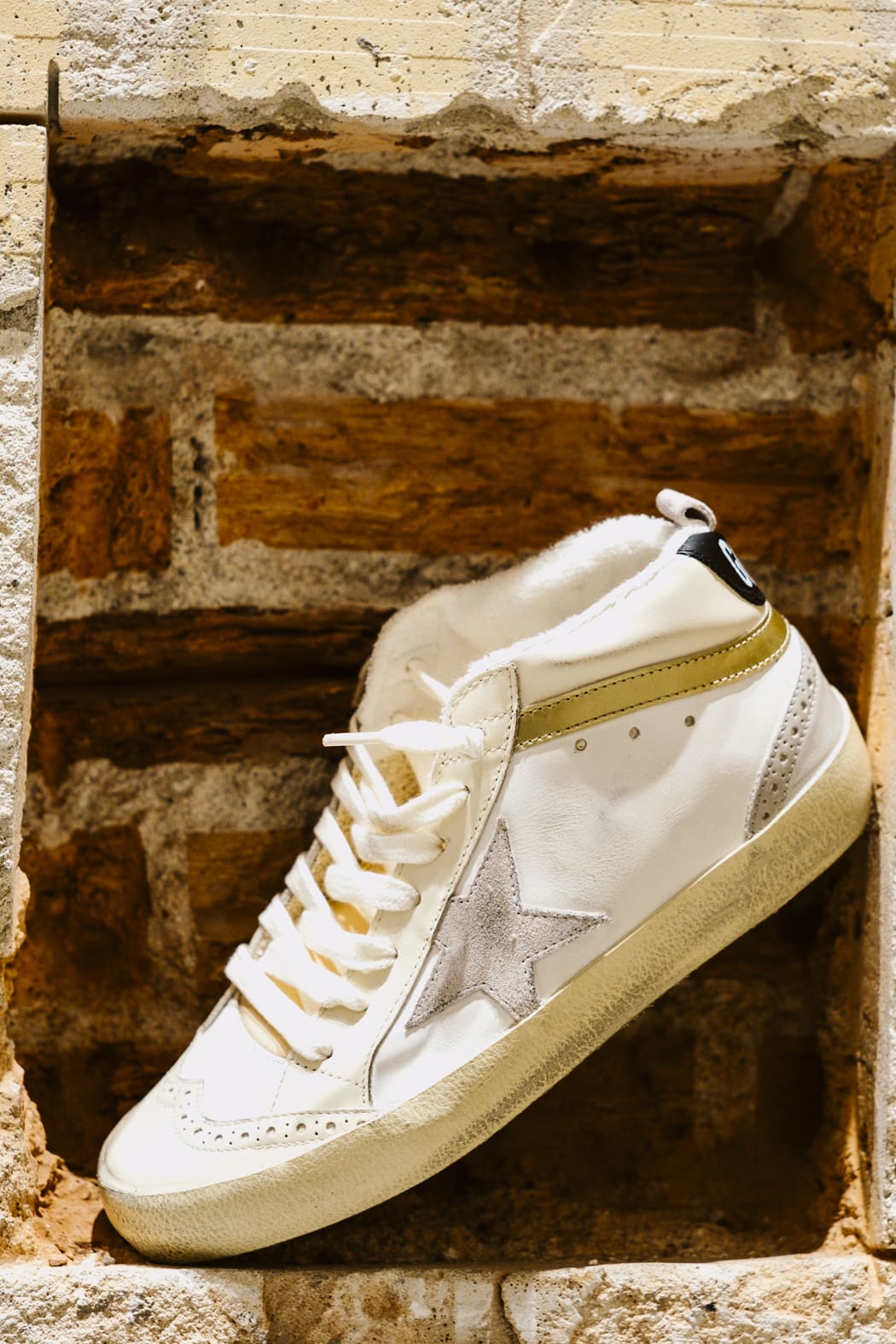 Versatilidad y una elegancia única: las zapatillas deportivas Mid Star se inspiran en la escena skate de los años ochenta, pero con un enfoque sofisticado. Estas zapatillas deportivas con pala de piel de color blanco y marfil se caracterizan por su estrella de ante color gris claro y su refuerzo del talón de piel negra. Para completar su estilo, el detalle de «coma» de piel dorada de efecto cromado y las aplicaciones con perforaciones de estilo inglés.