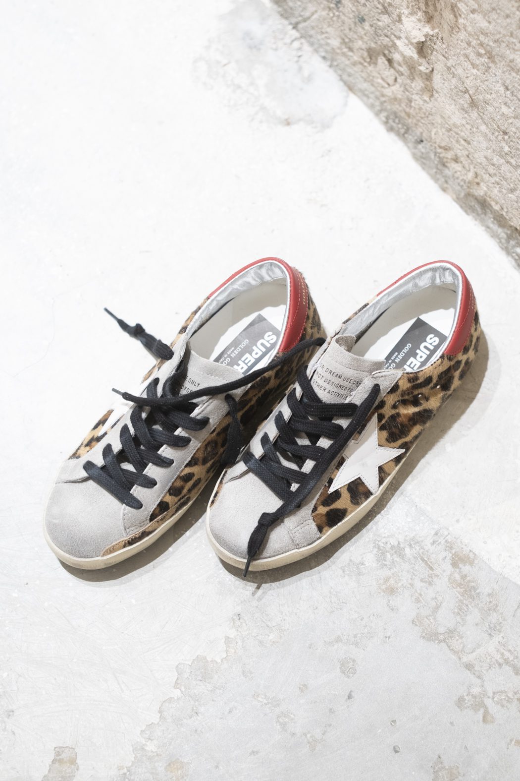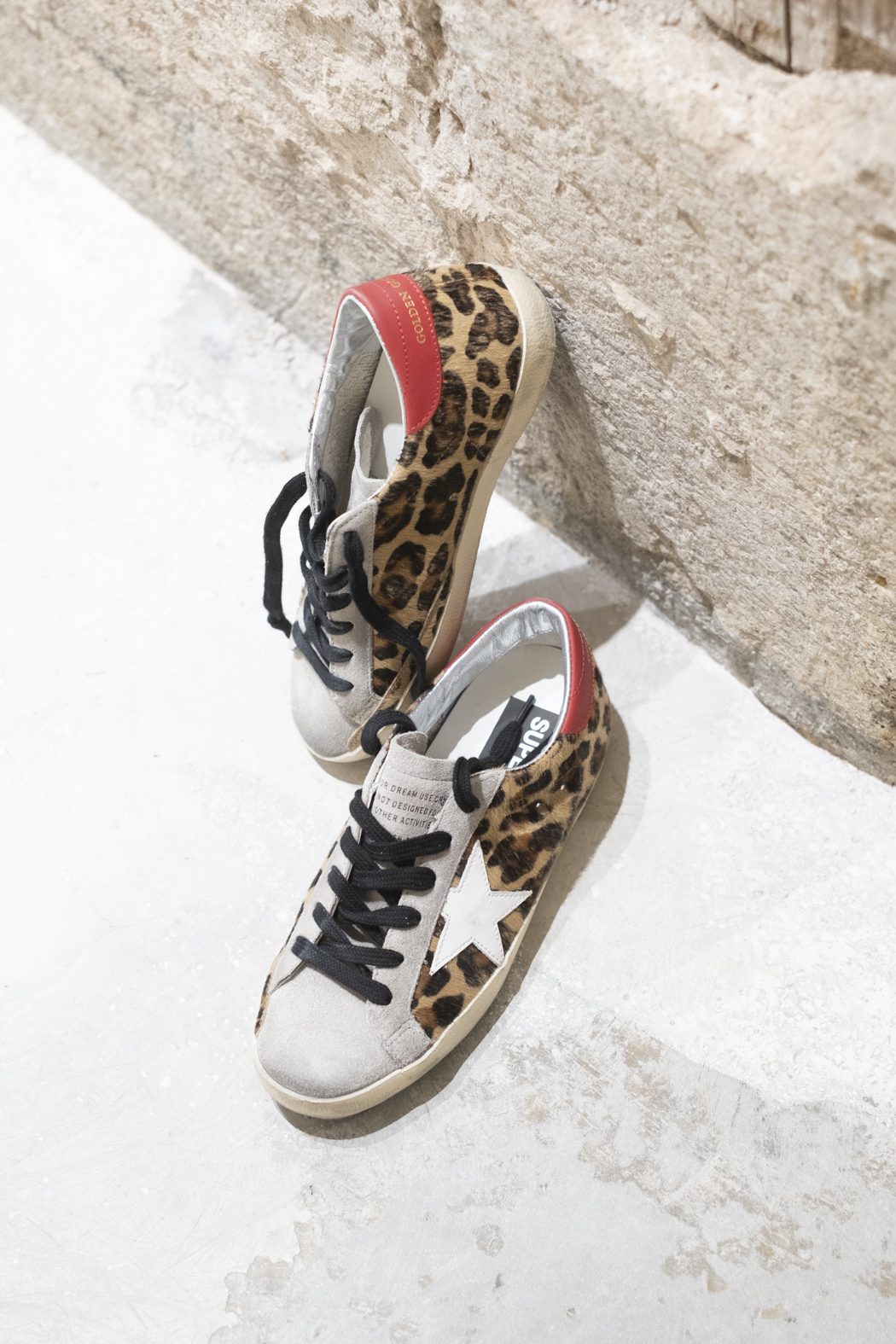 Un icono atemporal, pero en continua evolución. En Golden les encanta reinterpretar nuestros clásicos constantemente, cada vez bajo una luz diferente. Los estampados animal print y la inspiración en la naturaleza son algunos de los elementos que definen el estilo Golden Goose, especialmente para esta colección donde se pueden encontrar referencias explícitas al mundo animal. Estas zapatillas deportivas Super-Star dan continuidad el tema gracias al mini estampado de leopardo flocado.