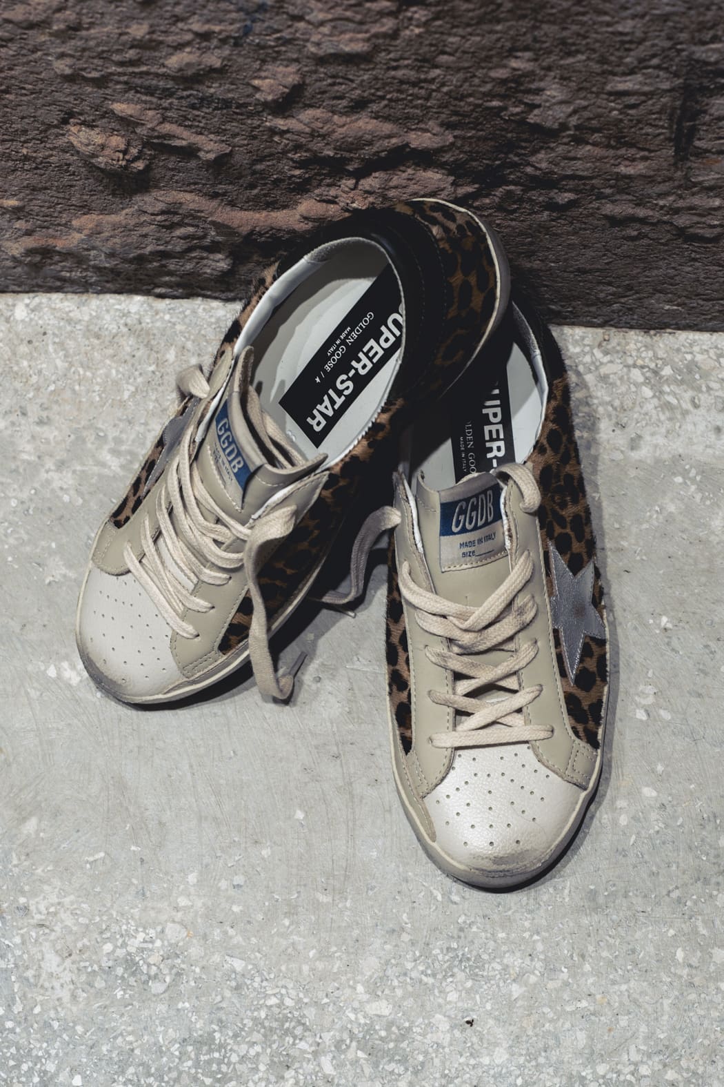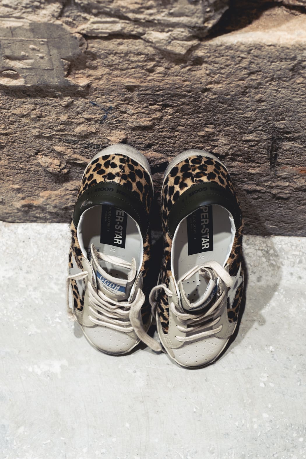 Un icono atemporal, pero en continua evolución. En Golden les encanta reinterpretar nuestros clásicos constantemente, cada vez bajo una luz diferente. Estas Super-Star con pala de piel color marfil y estampado leopardo se distinguen por su estrella de piel laminada color plateado . Y como toque final, los cordones color nata.