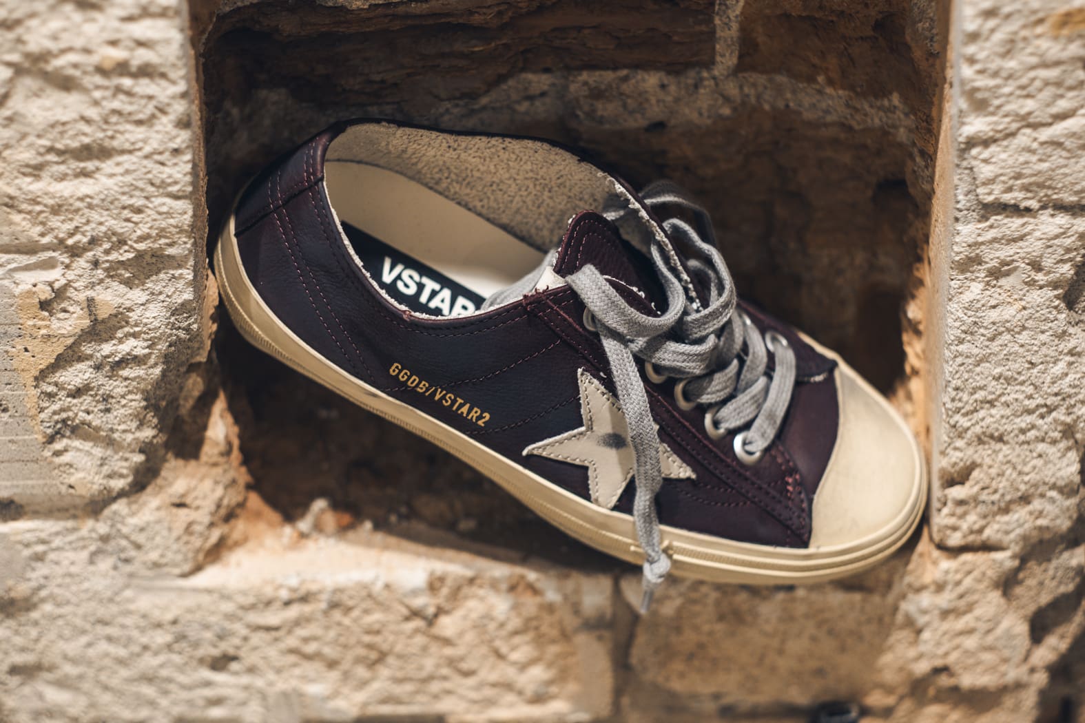 La belleza reside en la simplicidad: nuestras V-Star representan la unión entre una forma esencial y detalles de estilo. Este modelo para mujer con pala de napa color vino se caracteriza por su estrella de piel blanca. Y como toque final, el refuerzo del talón de piel y los cordones grises.
