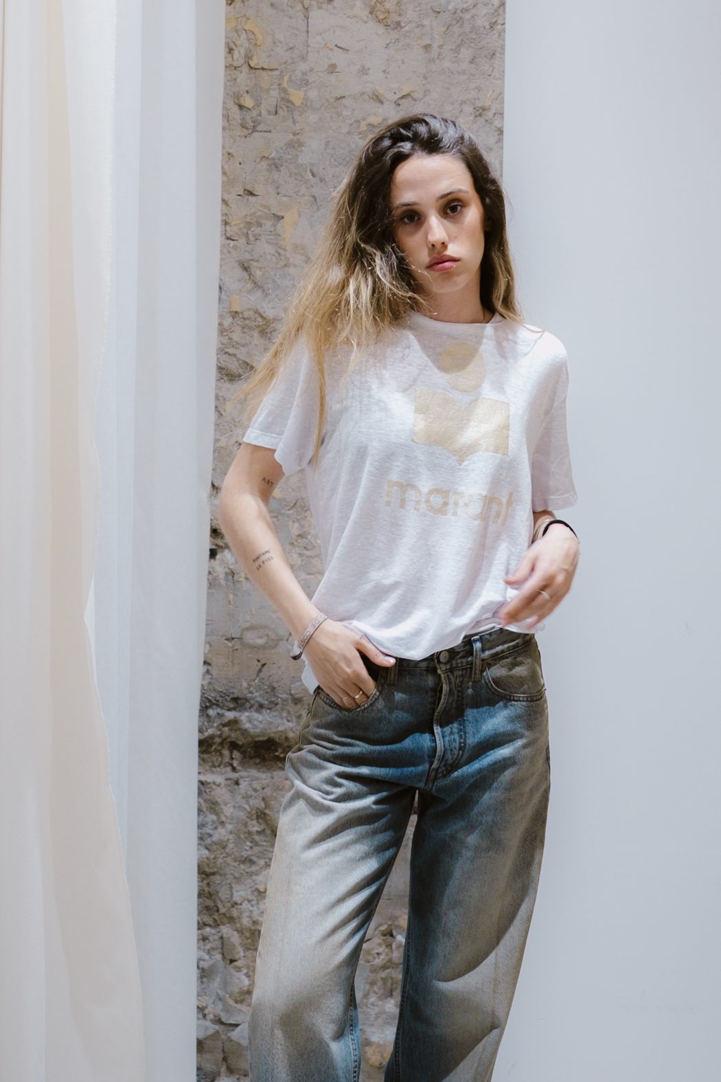 Logo «Marant» metalizado estampado en la parte delantera