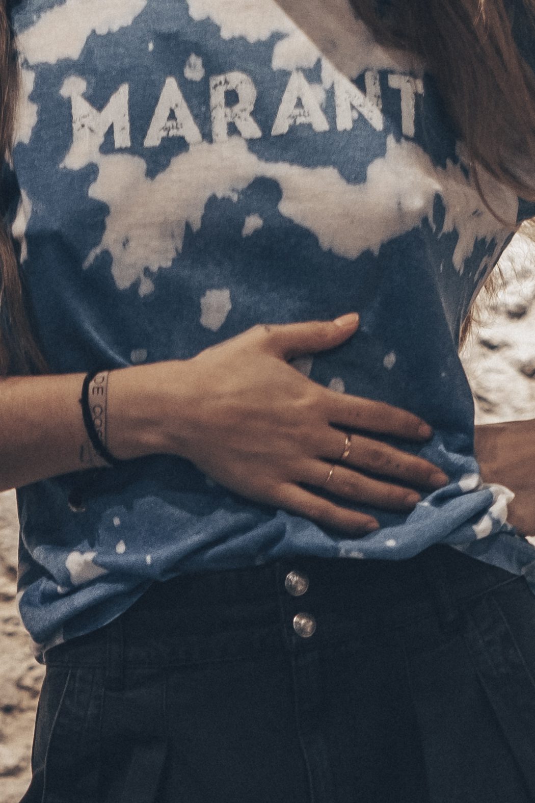 Cierre con dos botones de presión grabados y cremallera bajo tapeta
