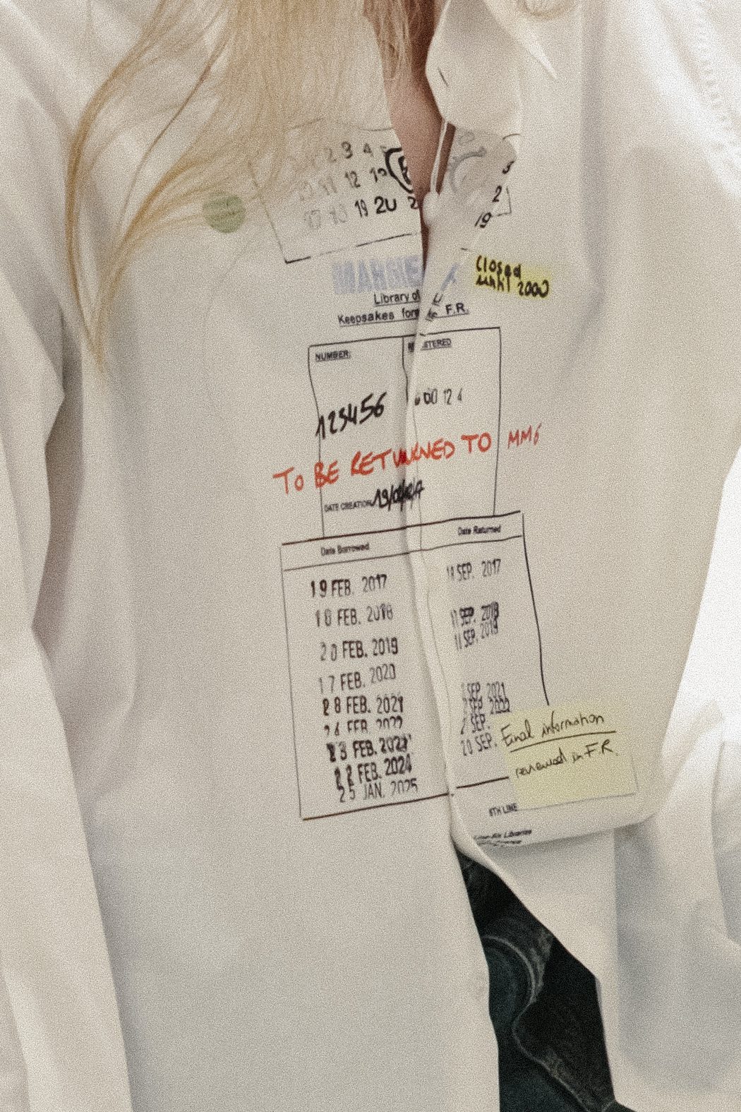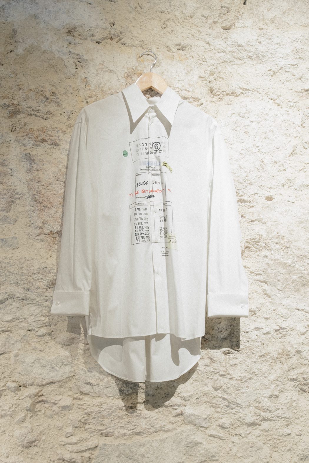Camisa oversize de algodón 100% en blanco puro con estampado frontal de ticket de compra.