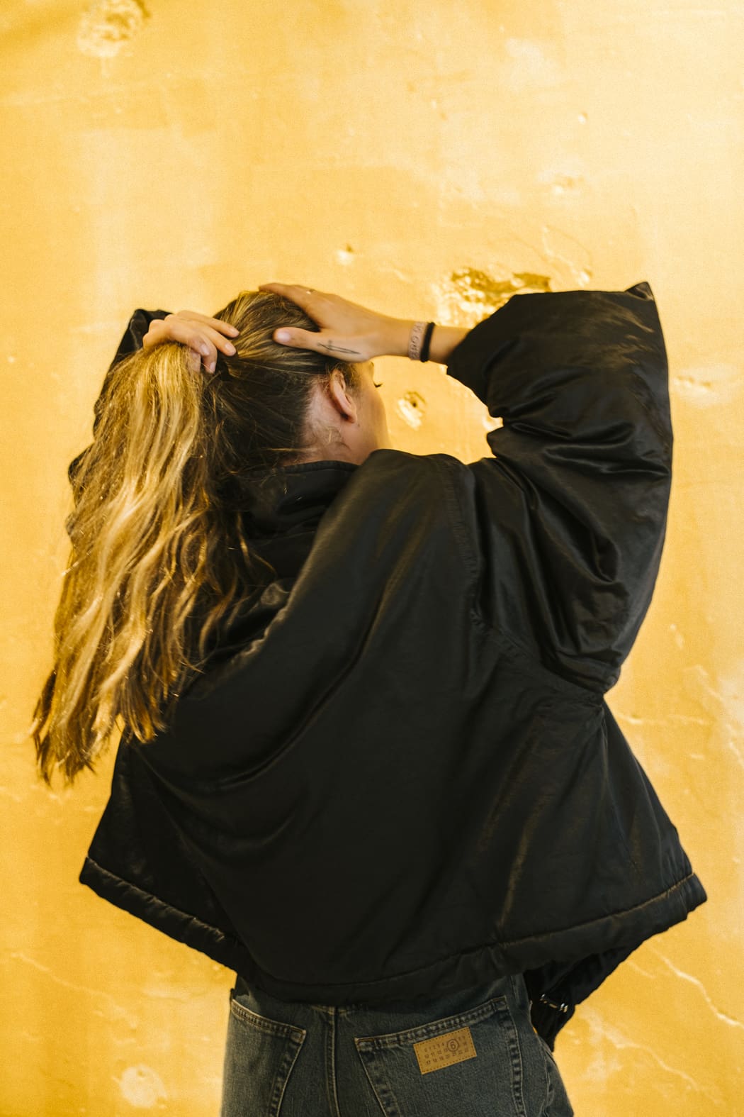 Una subversión discreta, rematada con un único botón, una tapeta oculta y la línea de puntadas blanca de MM6 en la espalda.