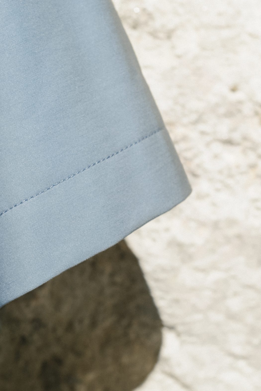 El cuello camisero y la tapeta oculta refinan su drapeado tipo capa, equilibrado por los bolsillos de parche estructurados.