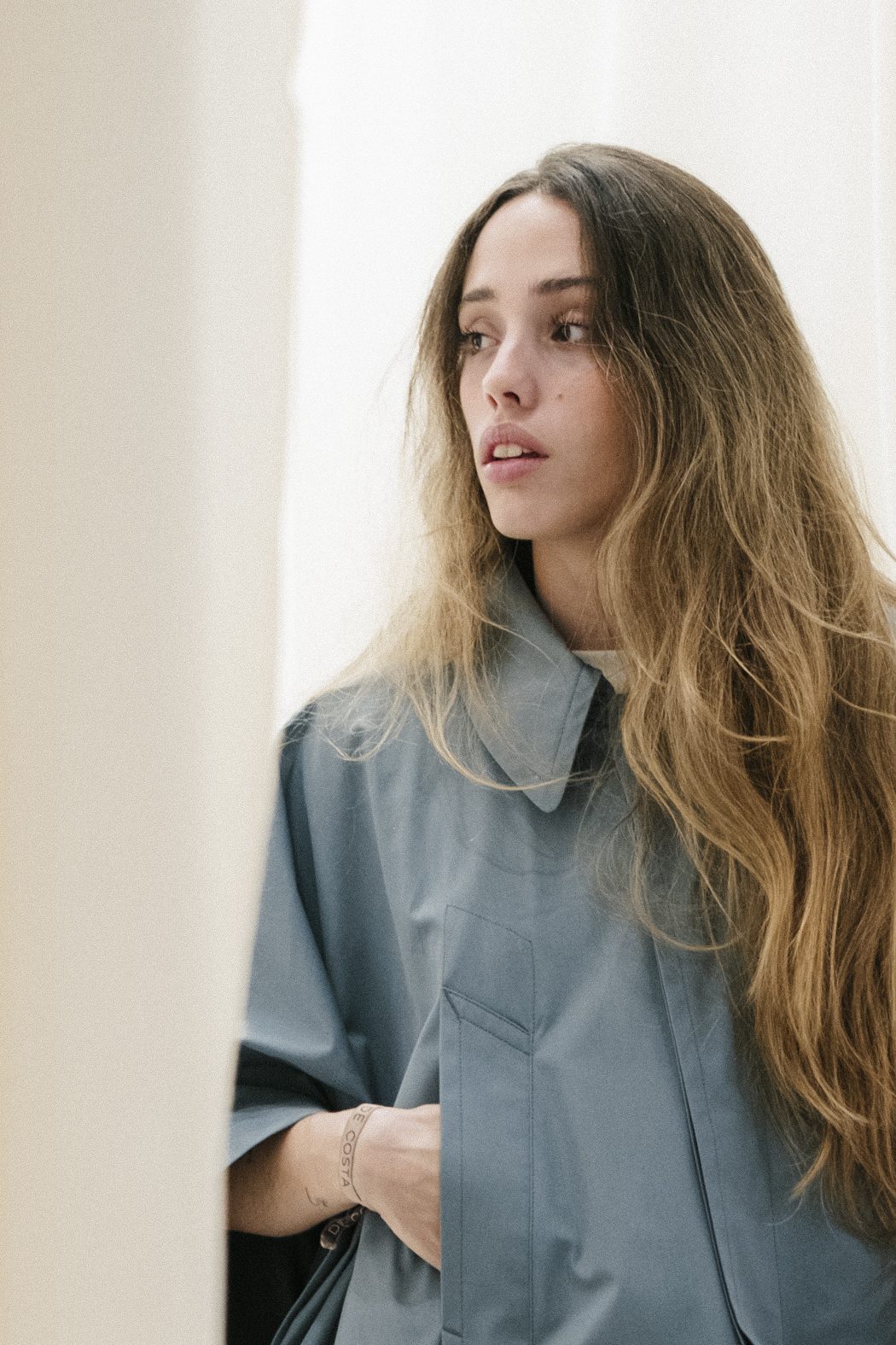 Abrigo oversize confeccionado en tela de gabardina de algodón repelente al agua, con mangas anchas y silueta fluida.