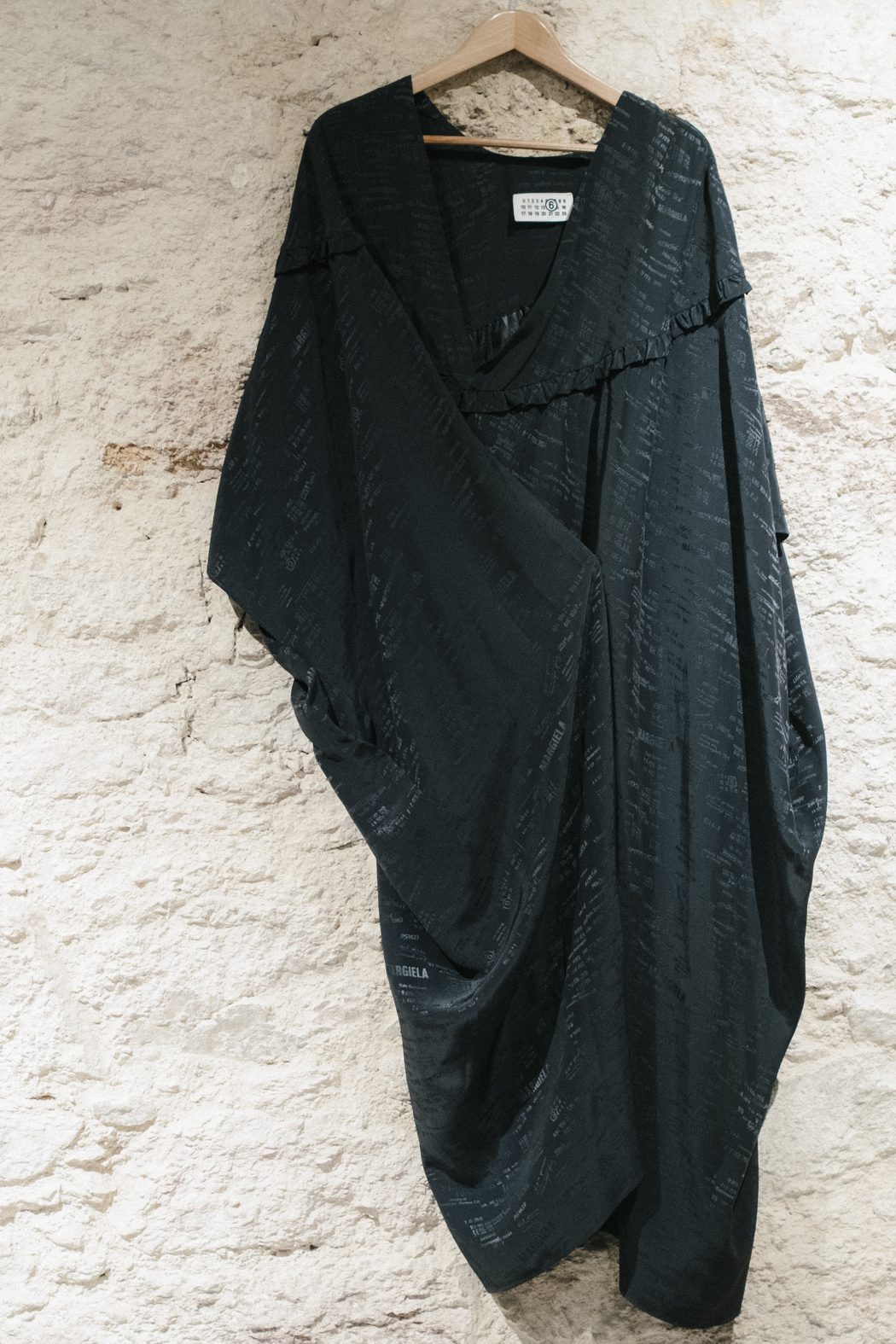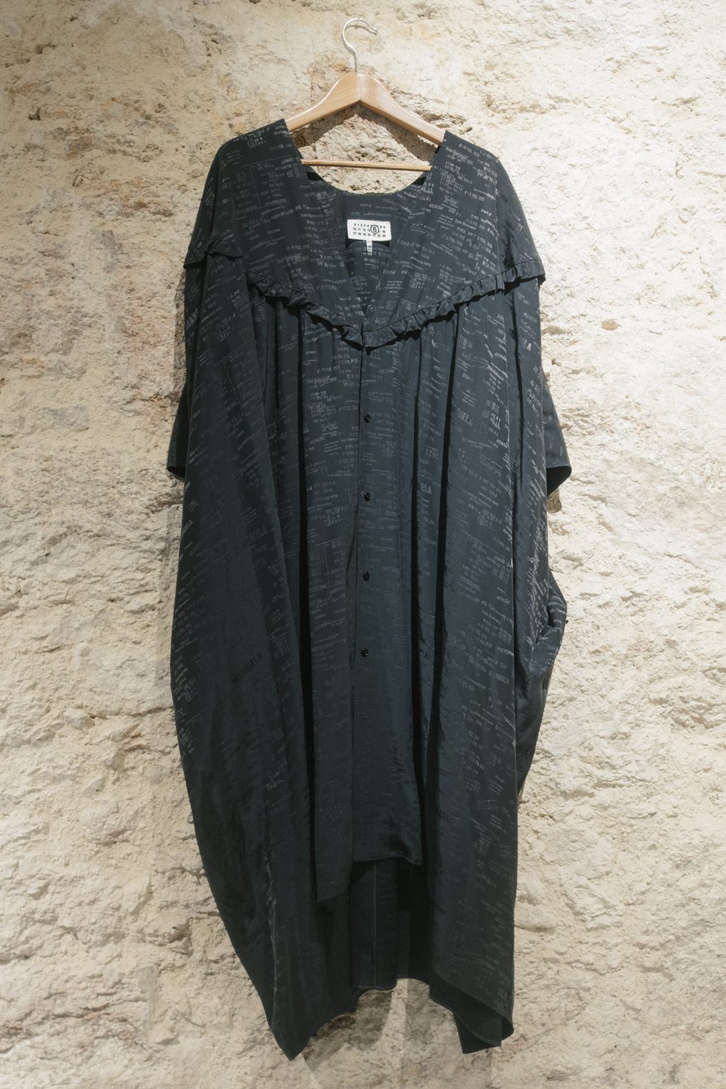 Vestido midi de largo recto con cuello en V y botonadura frontal.
