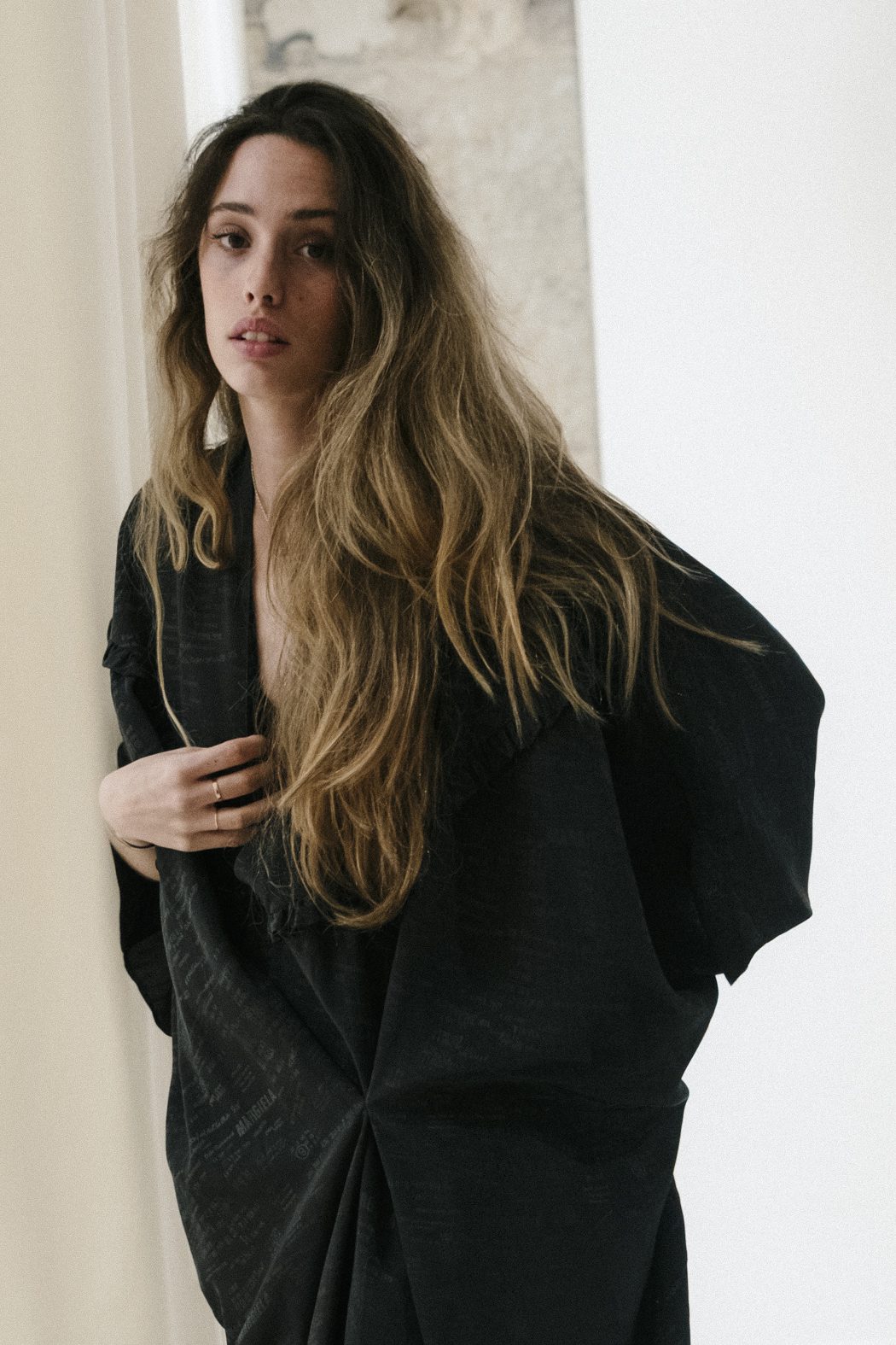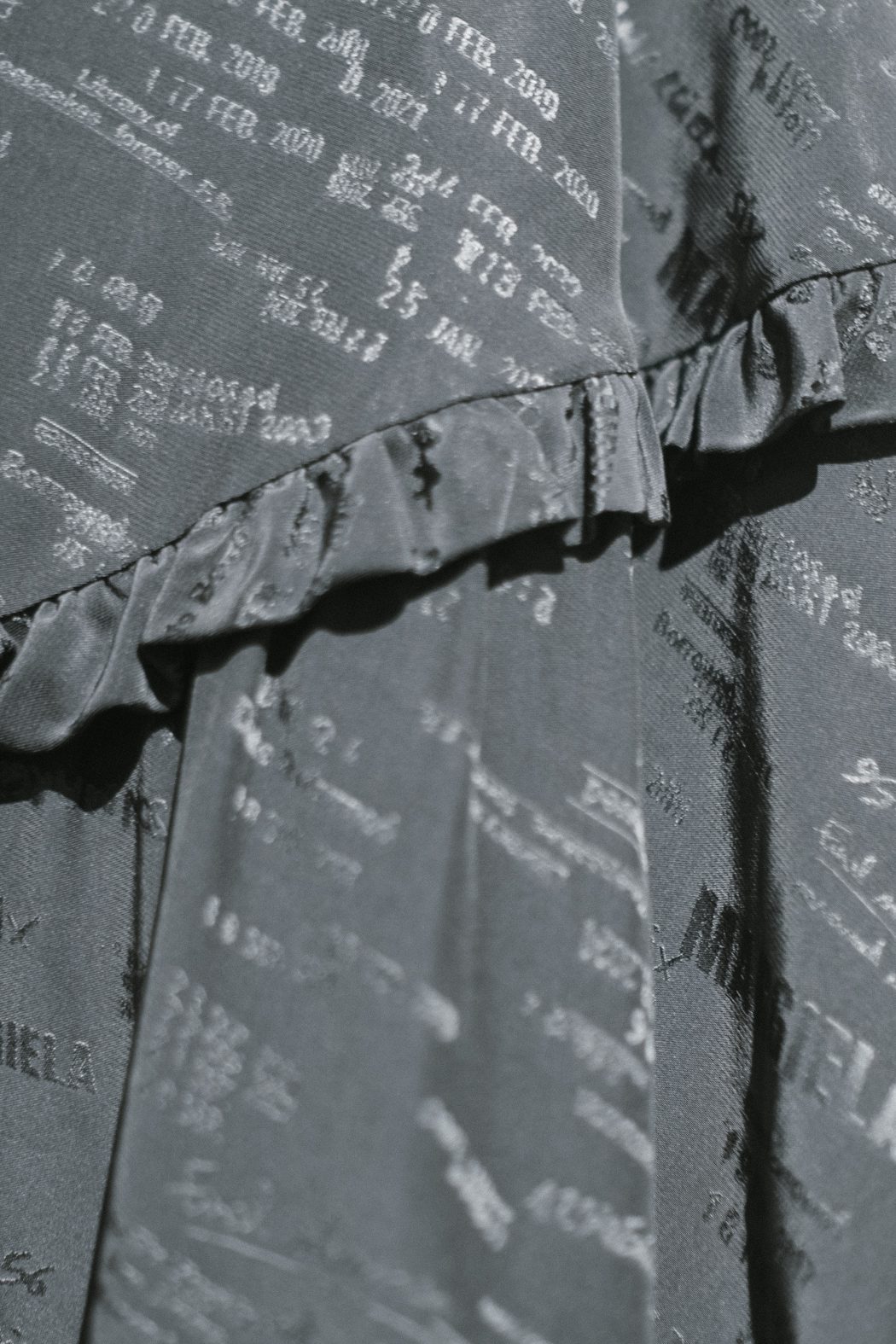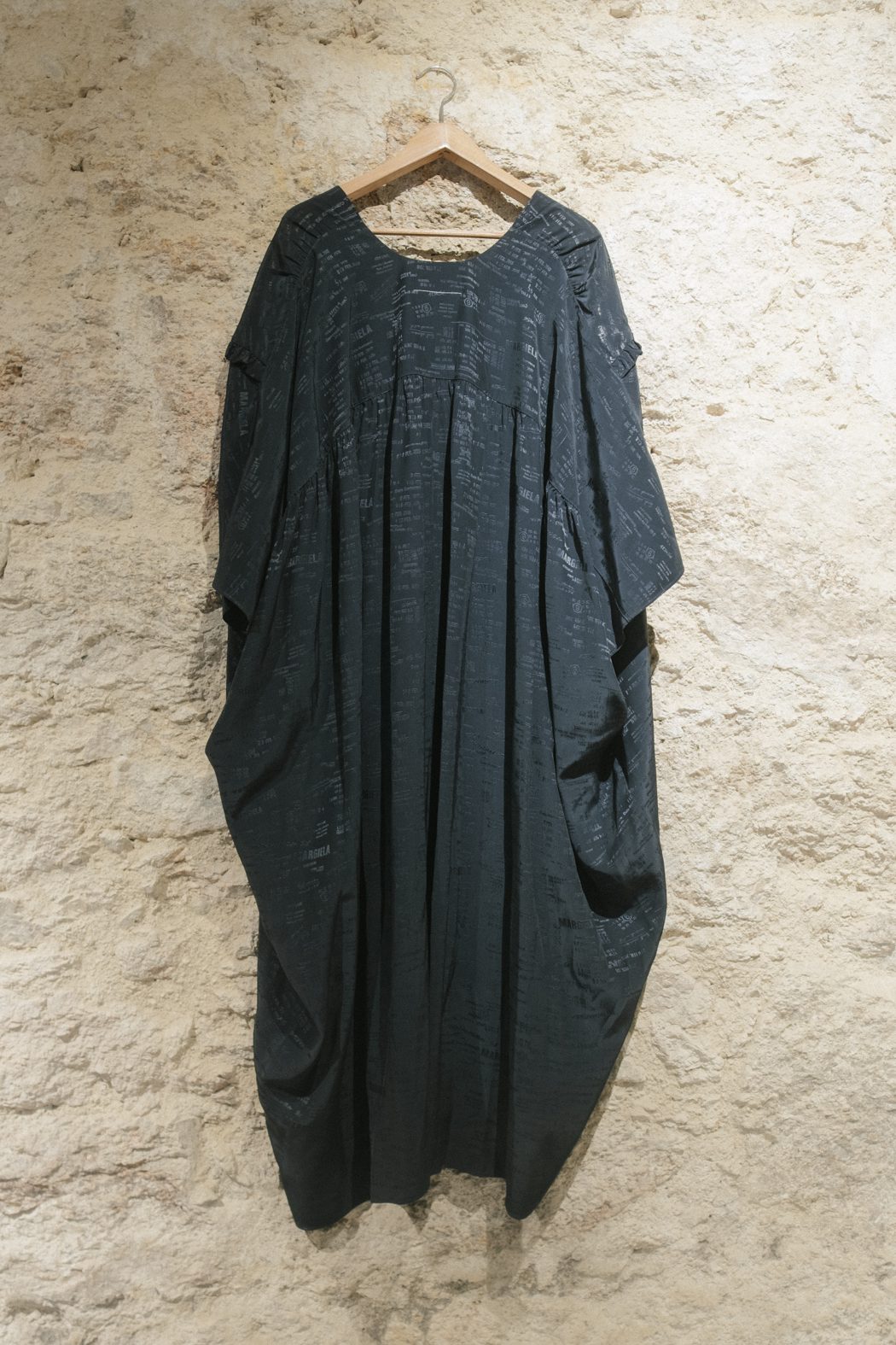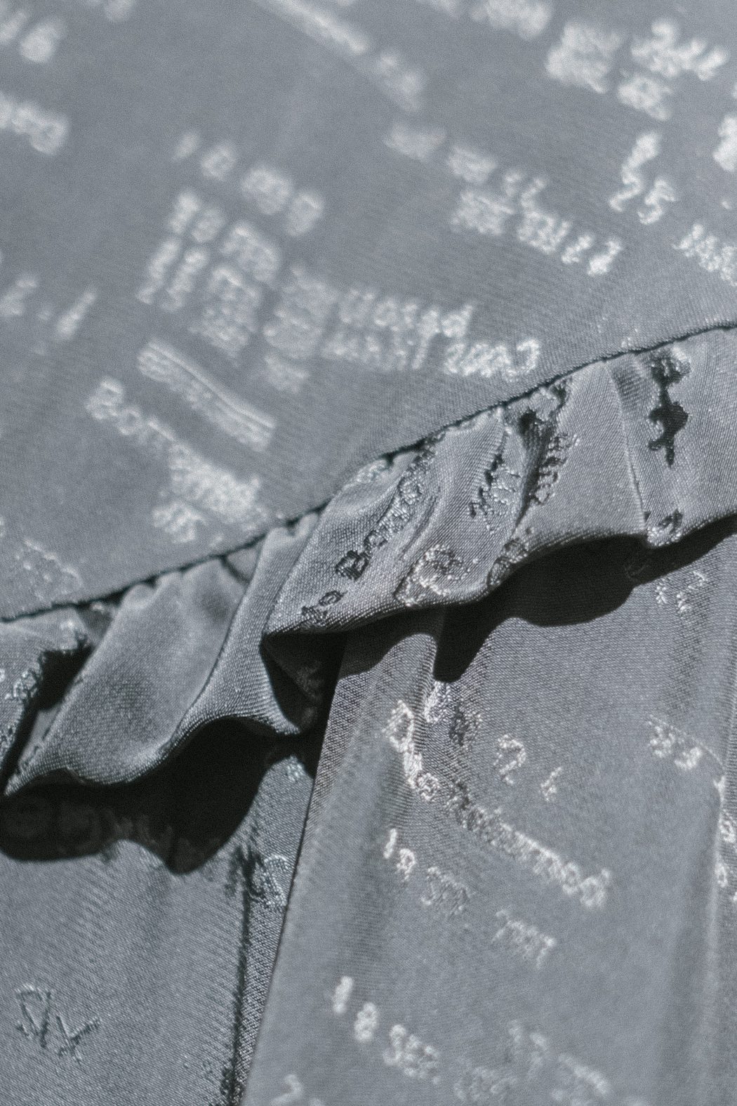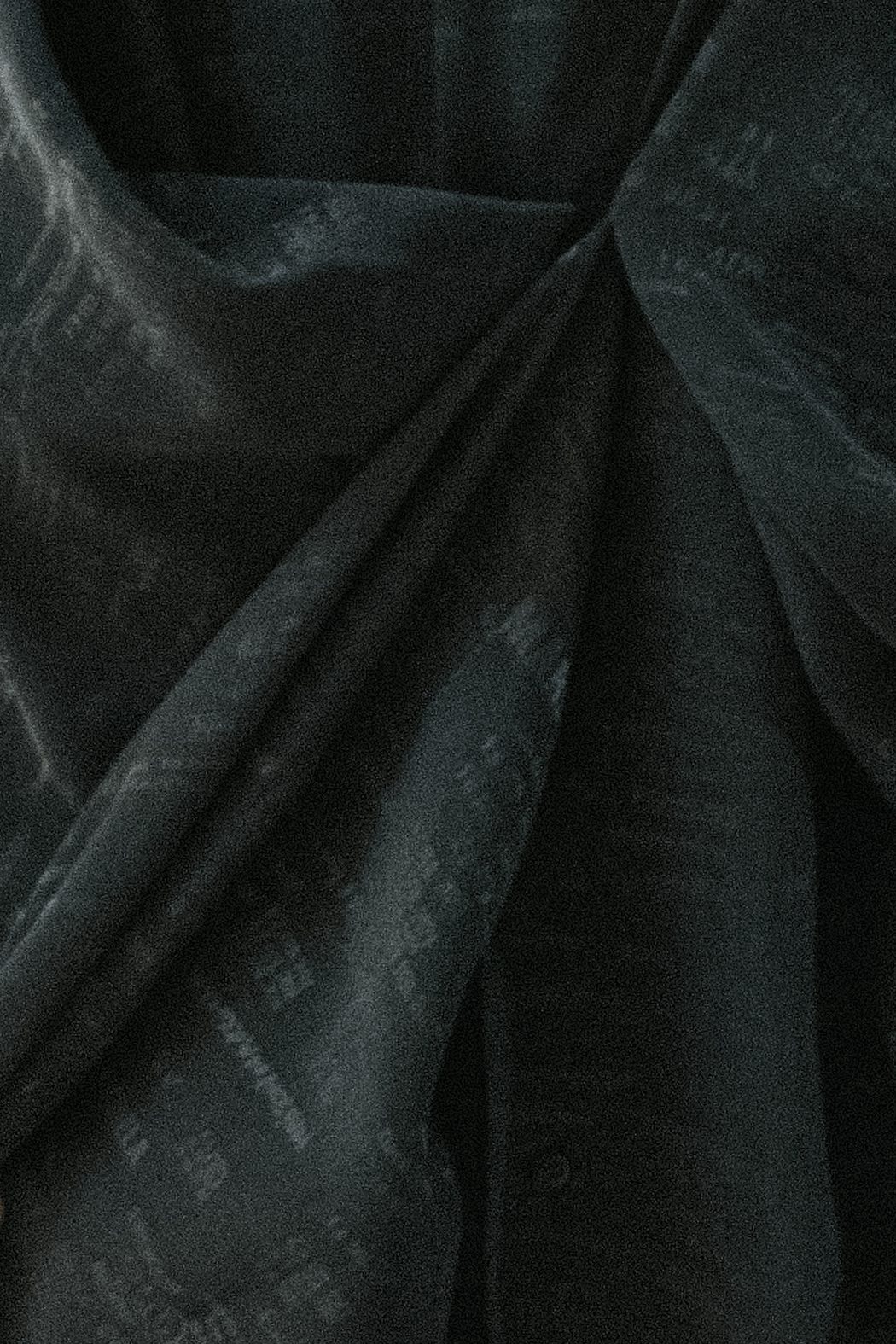 Tejido texturizado gris con relieve sutil (58% acetato, 42% viscosa).