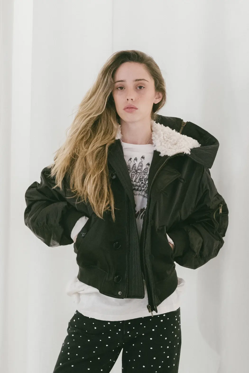 Bolsillos tipo parche con cremallera en la manga