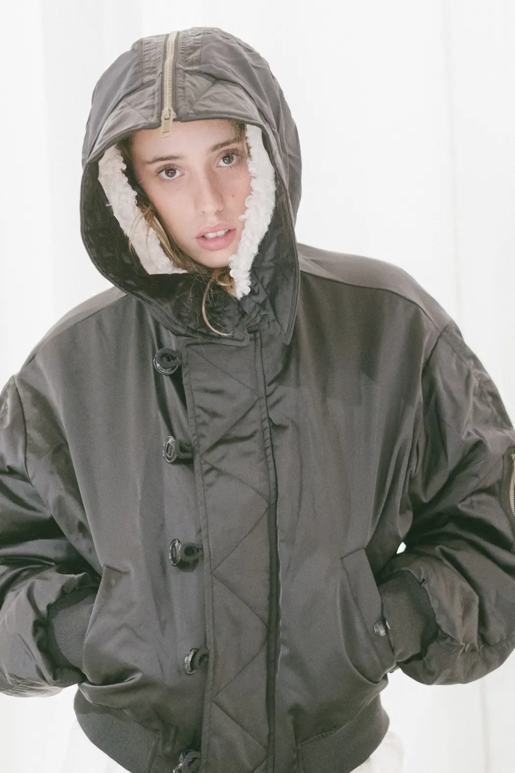Abrigo corto Elisa de satén acolchado