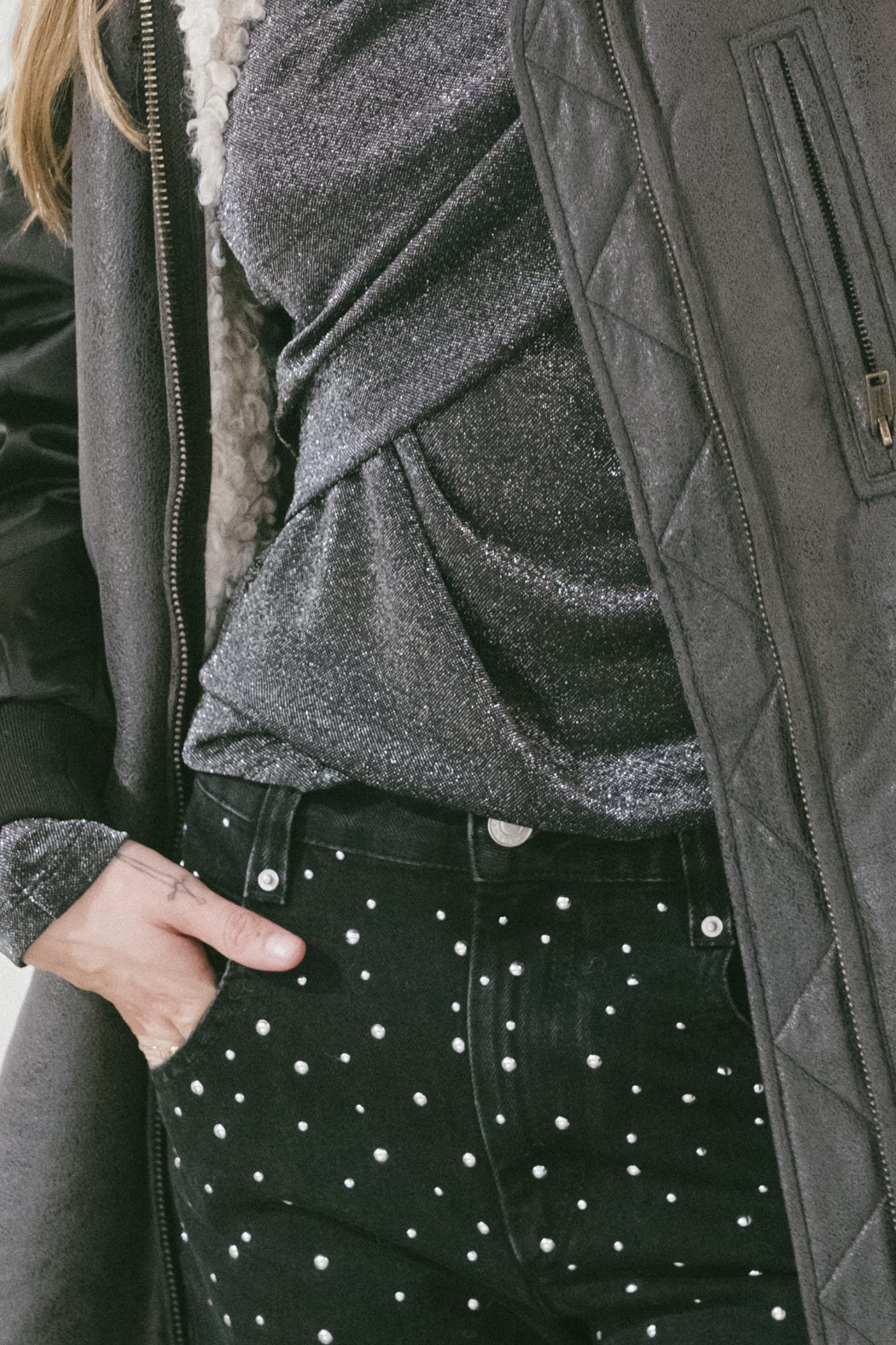 Bolsillos tipo parche con cremallera en la manga