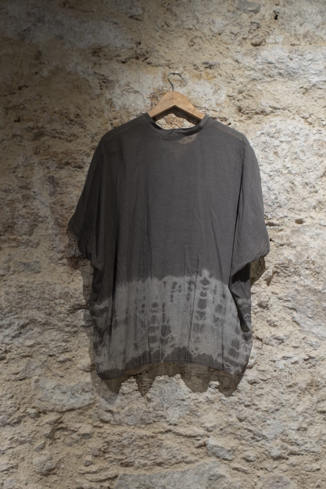 Blusa de manga corta en gris humo de Pas de Calais, en ligera mezcla de ramie (55%) y tencel (45%) con caída fluida y transpirable.