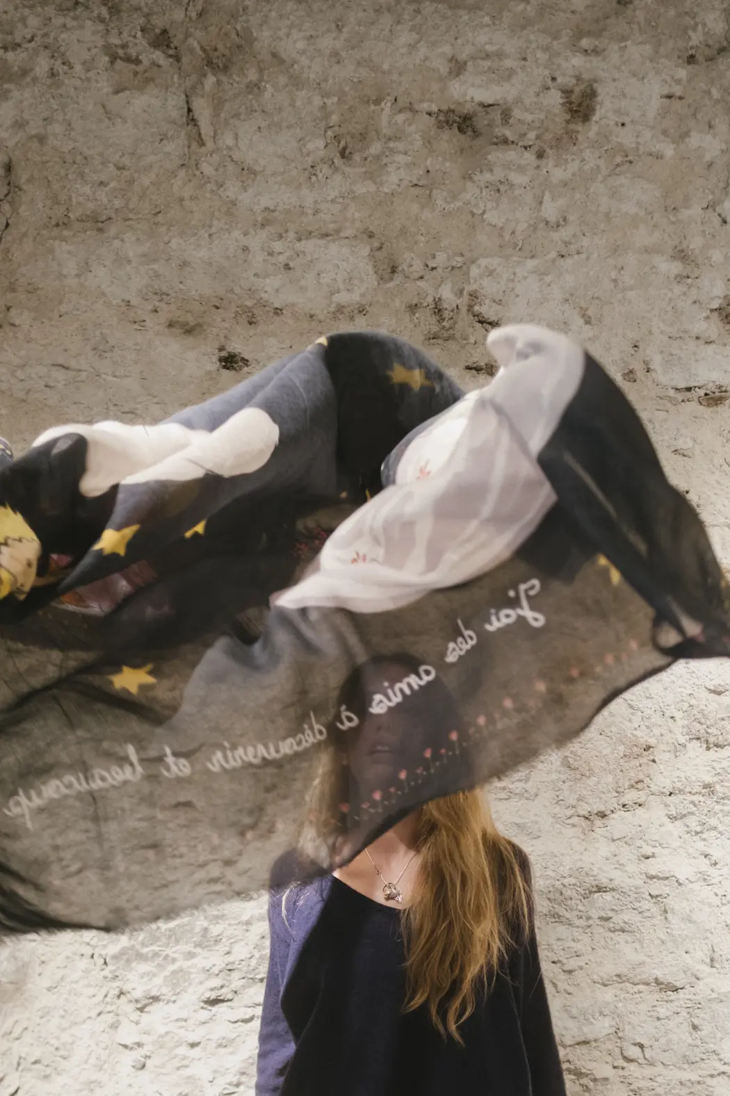 La estola Des Amis forma parte de la colección cápsula inspirada en El Principito, la obra inmortal de Antoine de Saint-Exupéry publicada en 1943.