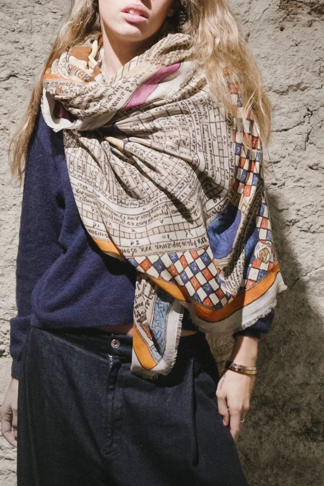 La estola Mandala de Faliero Sarti presenta una composición en modal (90%) y cachemira (10%), que le otorga suavidad, ligereza y calidez.