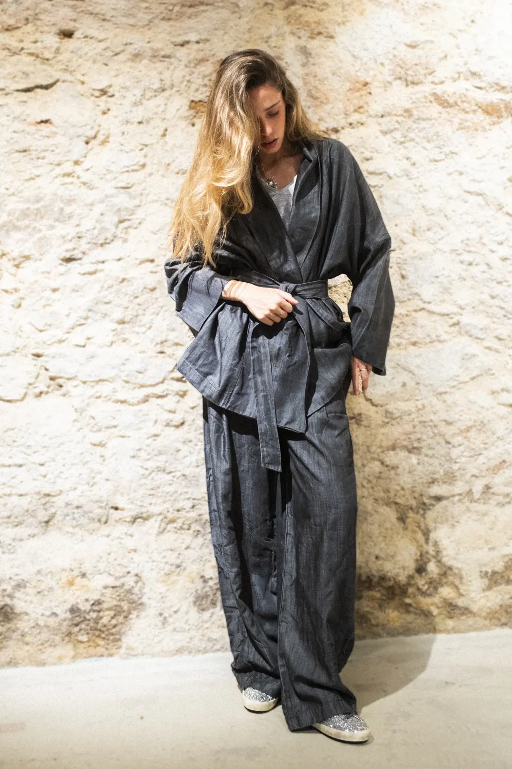 Una prenda versátil y atemporal, ideal para combinar con la chaqueta kimono a juego o para aportar sofisticación a un look relajado.