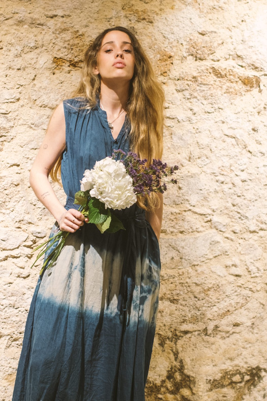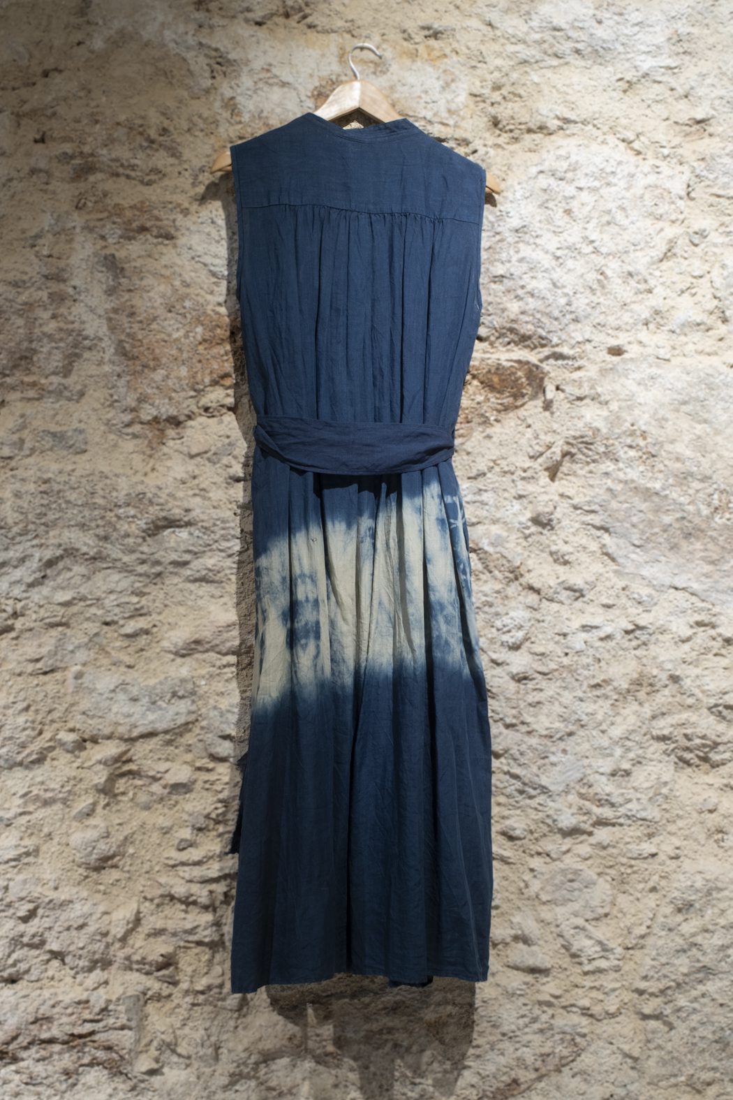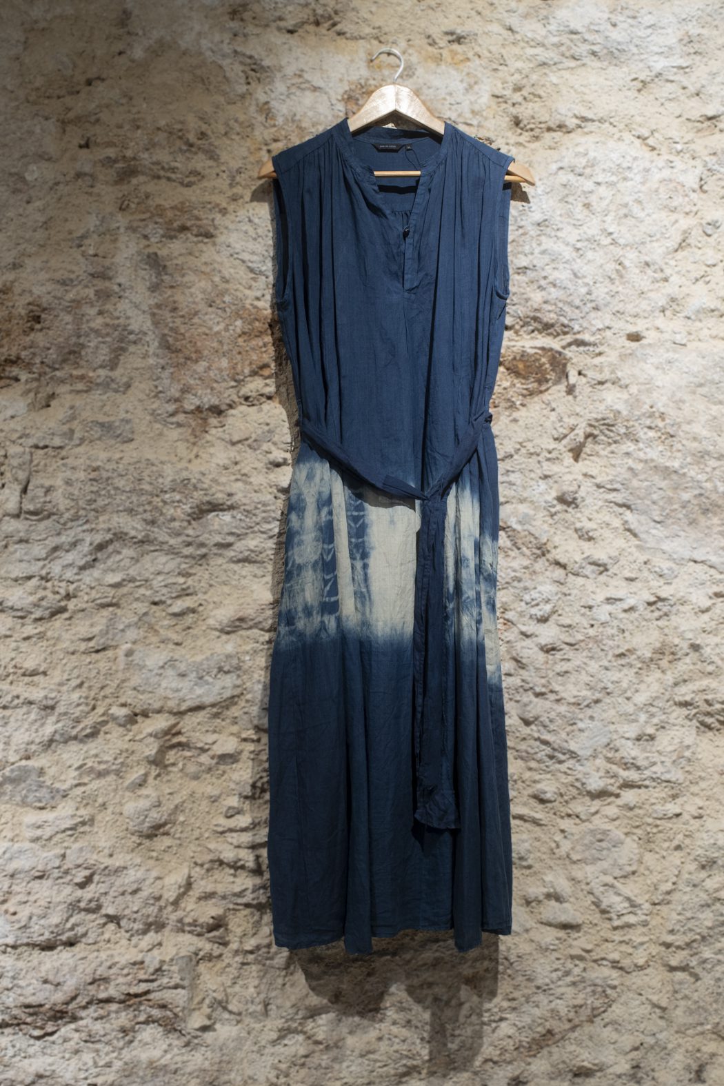 Vestido sin mangas en azul inidigo de Pas de Calais, tejido en refinada mezcla de ramie (55%) y tencel (45%) para una caída fluida y transpirable.