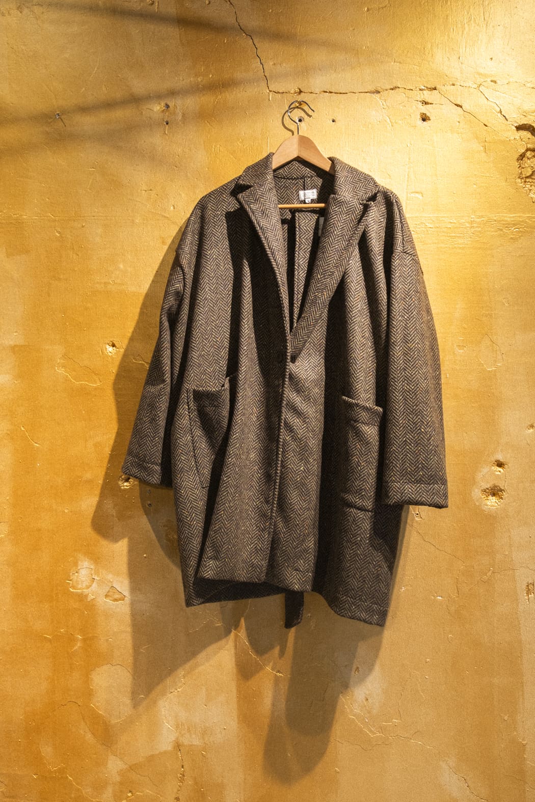Abrigo de lana mezclada con corte recto y aire sofisticado. Incorpora cuello sastre, cierre de un botón y dos bolsillos de parche delanteros que aportan practicidad. Se acompaña de cinturón a juego para marcar la silueta según el estilo deseado.