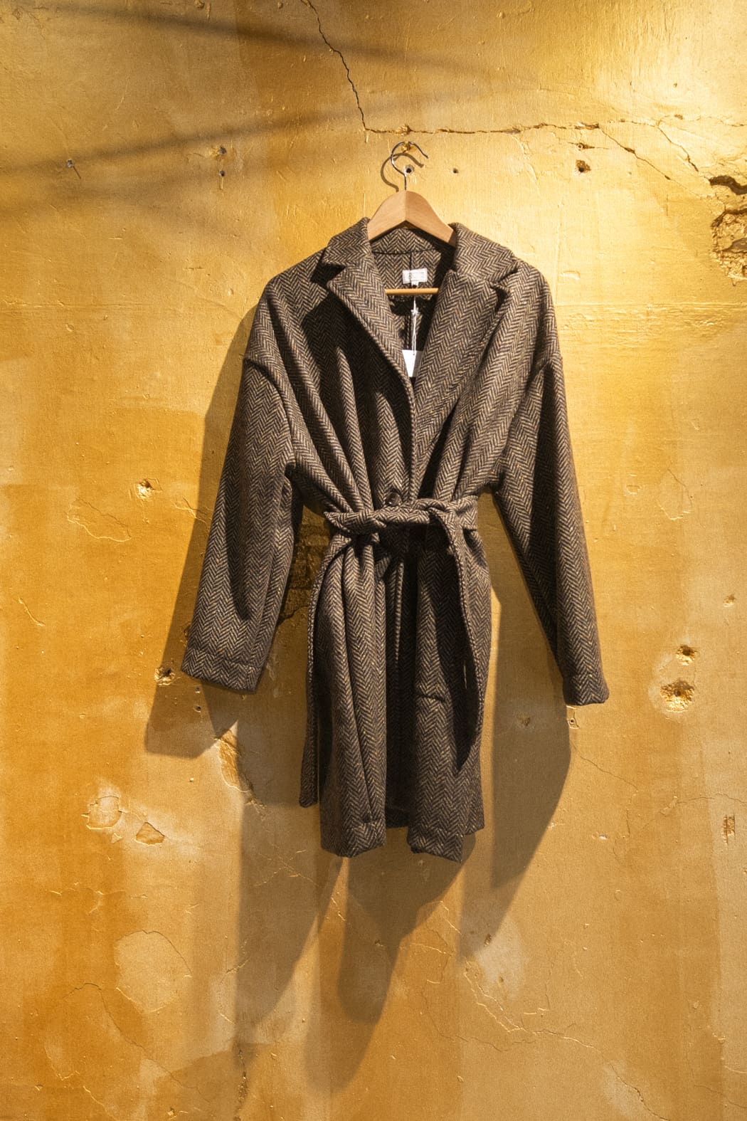 Abrigo de lana mezclada con corte recto y cinturón
