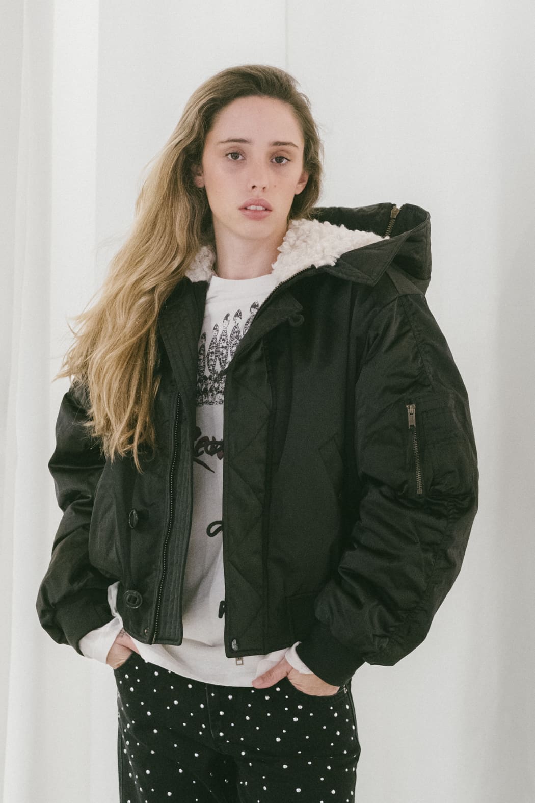 Bolsillos tipo parche con cremallera en la manga