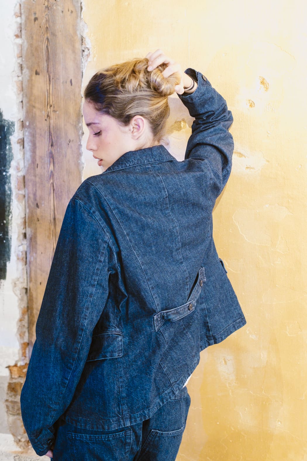 Una prenda que equilibra estilo y funcionalidad. Confeccionada en denim natural, esta chaqueta presenta solapa de muesca doblada y cierre frontal de botones que le aportan un aire sofisticado y atemporal. Sus bolsillos delanteros con tapeta ofrecen un detalle práctico, mientras que los puños abotonados y la cincha en la espalda media garantizan un ajuste entallado y favorecedor.
