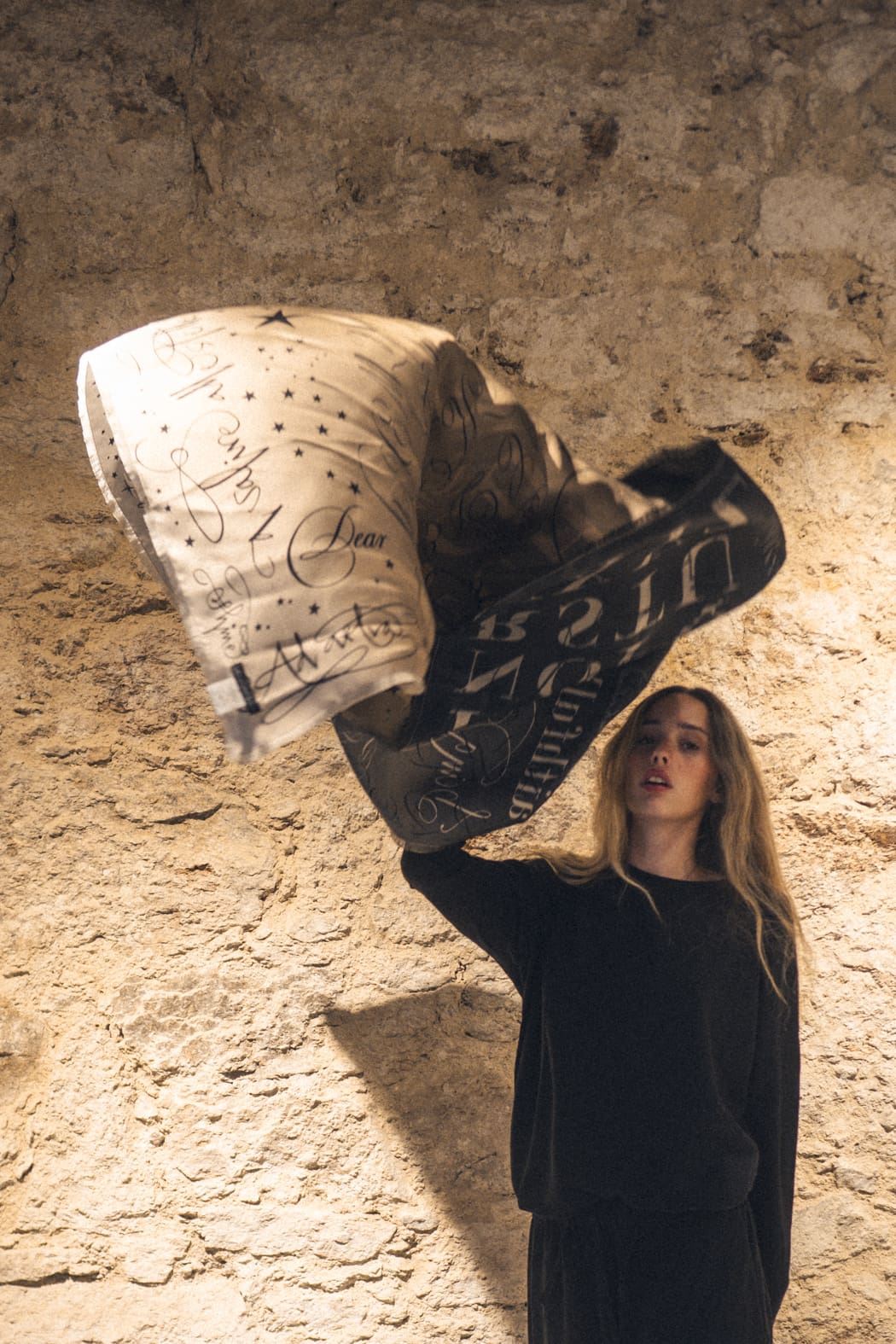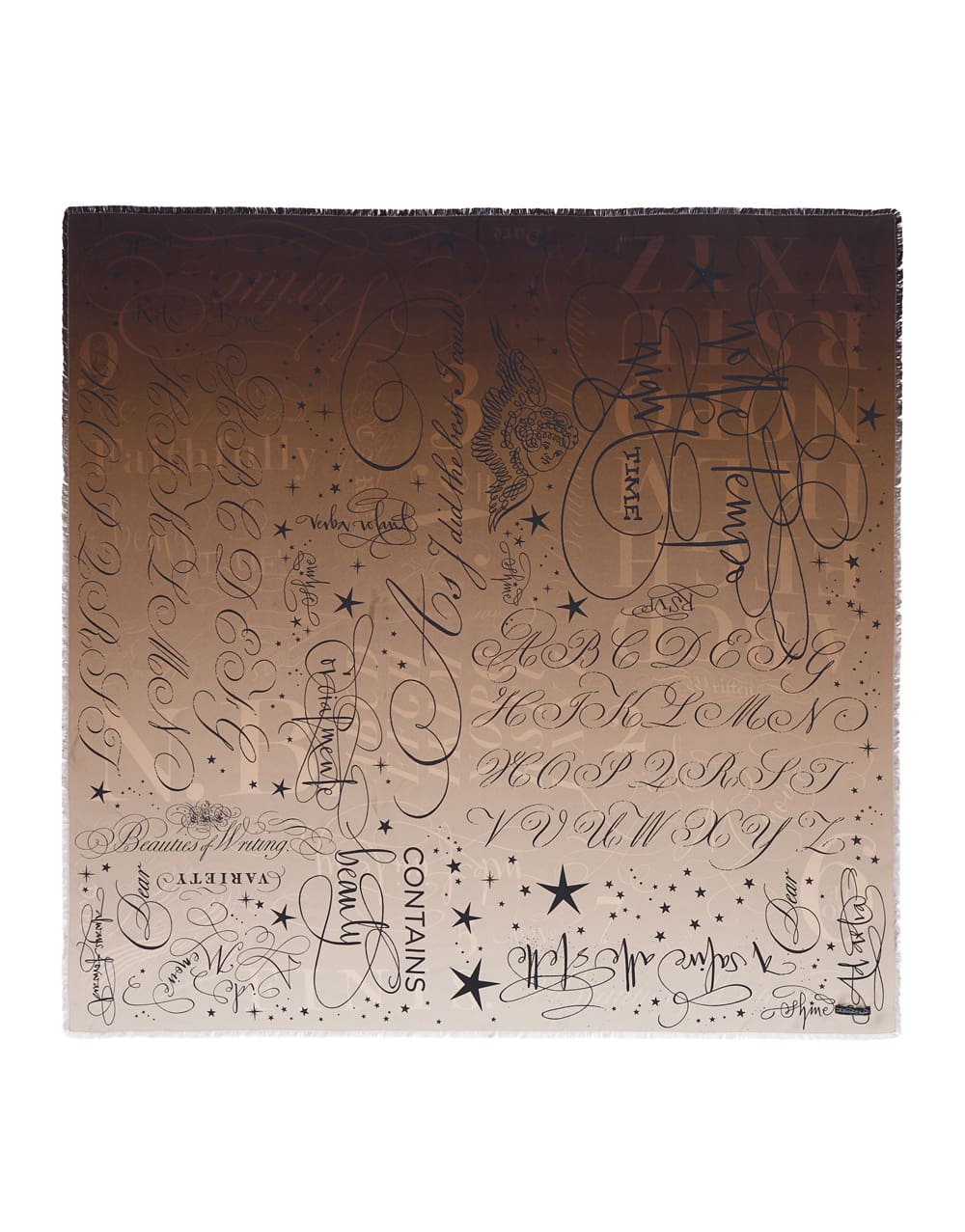 Foulard cuadrado de seda 100% con un diseño exclusivo en colaboración con Betty Soldi, donde la caligrafía artística se convierte en protagonista. Inspirada en el espíritu creativo del Renacimiento, su estampado poético invita a explorar paisajes imaginarios llenos de significado.